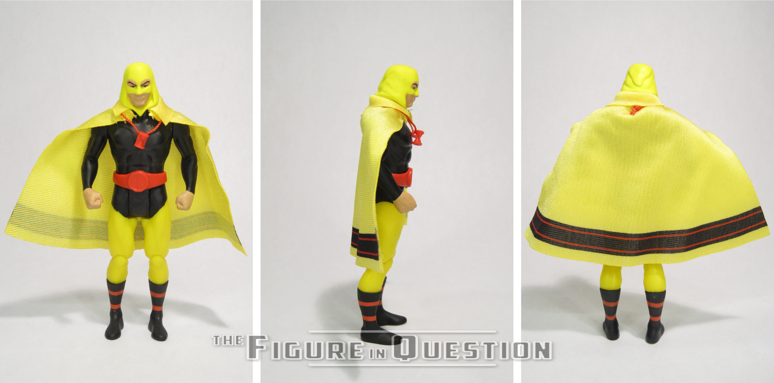 It’s drug use, but as a super power.  You know, for kids!  Like Starman, there have been a few Hourmen, but this is Rex Tyler, the original.  He’s built on a smaller base body, shared with Vigilante.  Rex has been up and down in terms of sizing and scaling, so the shorter at least adds some variety of scaling to the set.  He’s got a new head sculpt, which is…fine.  I can’t say I love it, but it’s alright.  Passable.  I’ll discuss it more in the paint section.  He’s also got a new belt and necklace, both of which work pretty well.  It’s topped off with a cape, which has a pretty impressive printed pattern on it and its own collar as well.  The paint work, especially on the head, is iffy.  The mask is missing the black section, which I always feel throws off the general look.  The DCUC figure did it the same way, and it bugged me there too.  The eye holes also feel like they’re painted up far too high, and the nose coverage feels like it goes too low.  And the eyebrows are just…I don’t know.  Don’t love them, that’s for sure.