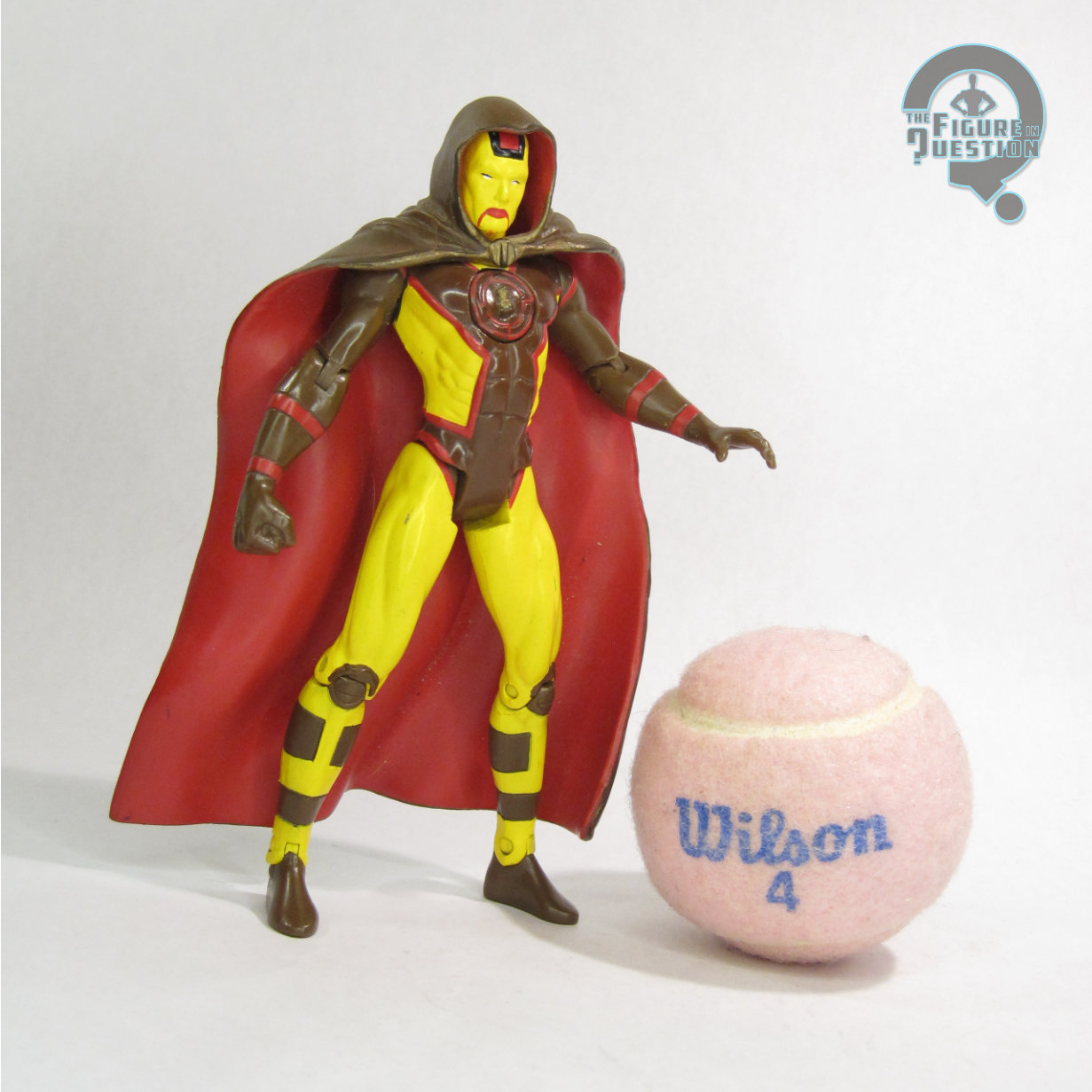 Hourman was part of the Amazing Androids set of figures from DC Direct, released in November of 2000.  At the time of release, he was probably the most relevant of the three figures, since he was still cropping up pretty regularly in JLA and JSA, but that’s certainly shifted in recent years.  This release remains his only action figure, and given its rough aftermarket value, I guess that makes sense.  The figure stands a little over 6 inches tall and he has 10 points of articulation.  I suppose an argument could be made for 11, since there *is* a joint on the neck, but it’s effectively rendered pointless by the hood/cape.  The sculpt was an all-new one, and honestly not a bad one.  It’s pretty basic, and captures the general design of the character, in all his rather simple glory.  The cape’s neat, because it’s got some pretty fun texturing, so it’s clearly a different material than the rest of him.  Perhaps the strangest thing about the sculpt is how his action feature works into everything.  His hourglass is designed to spin, not unlike a kitchen timer, but it also means spinning part of his pecs along with it, which is super funny looking.  It’s an odd choice, and kind of showcases DCD’s struggle earlier on to figure out what exactly they were trying to do.  So, you know, it’s gimmicky.  His paint work is on the simpler side, but does what it needs to.  It’s pretty darn thick, though, much like Amazo, and that does sort of dull the detailing on the sculpt a bit.
