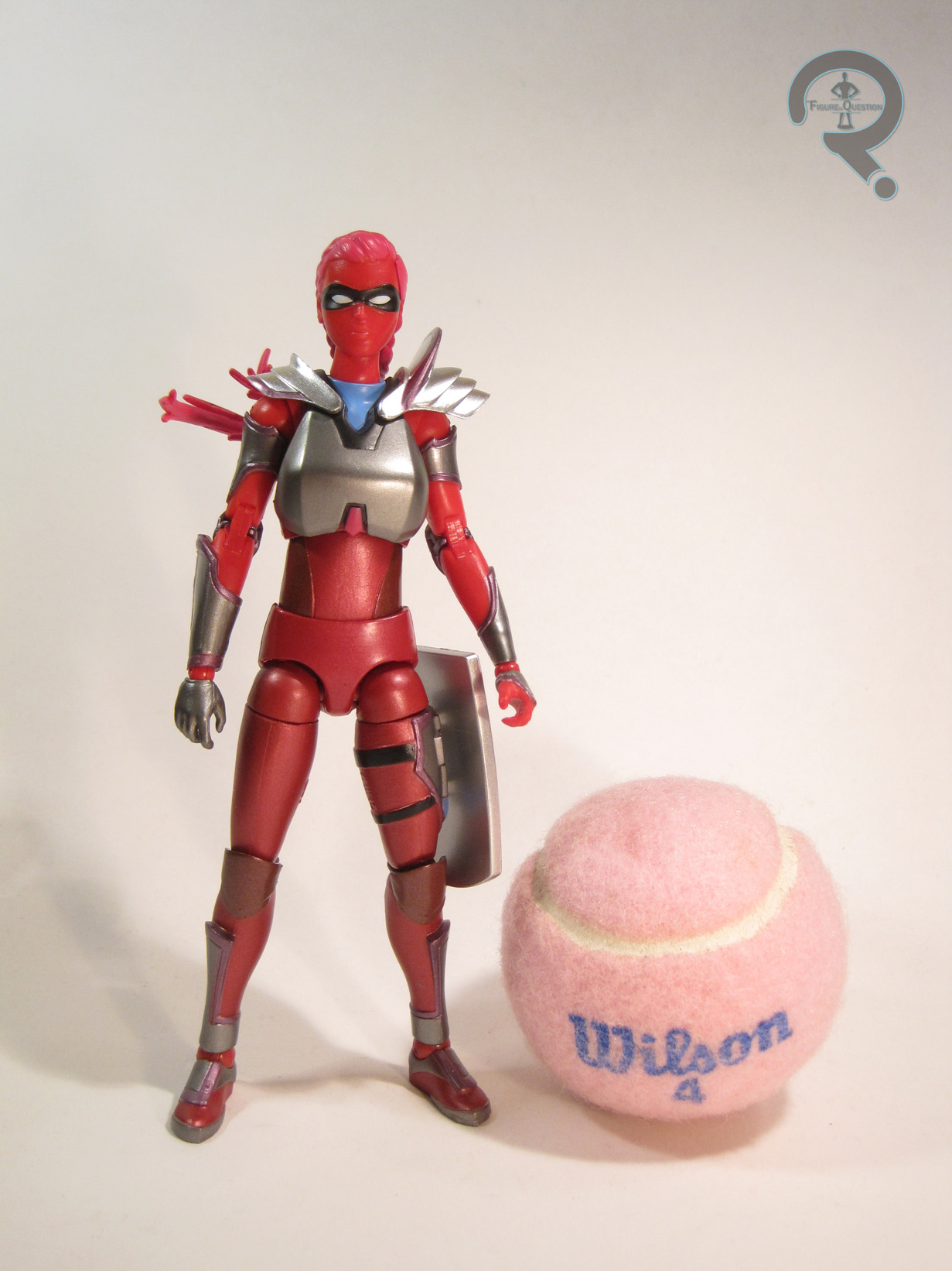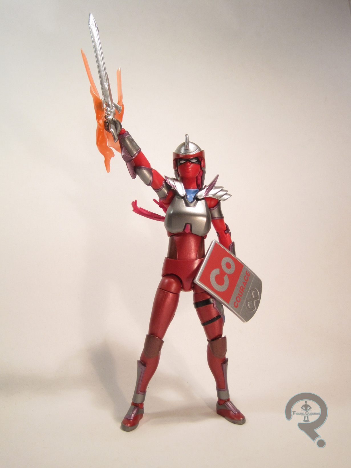 “Mastery trains to become an expert in everything she does. She has the ability to create physical duplicates of herself.” Okay, so we’ve got Cyper AND Multiple Man! Alright! …No more X-Men references? Alright. Mastery is another one of my favorite designs from this set. She’s got a lot going on that just really works for her. Hers is probably the simplest of the new designs, resulting in her possessing a very bold look about her, and bringing her the closest to the Courage Series figures in terms of feel. In particular, I really love the scarf piece, which, like Creativity’s braids, has a great dynamic flow to it, and just pulls the whole figure together. I also really like the color scheme here; it’s different, but the bright green and blue give her a very definite “pop.”