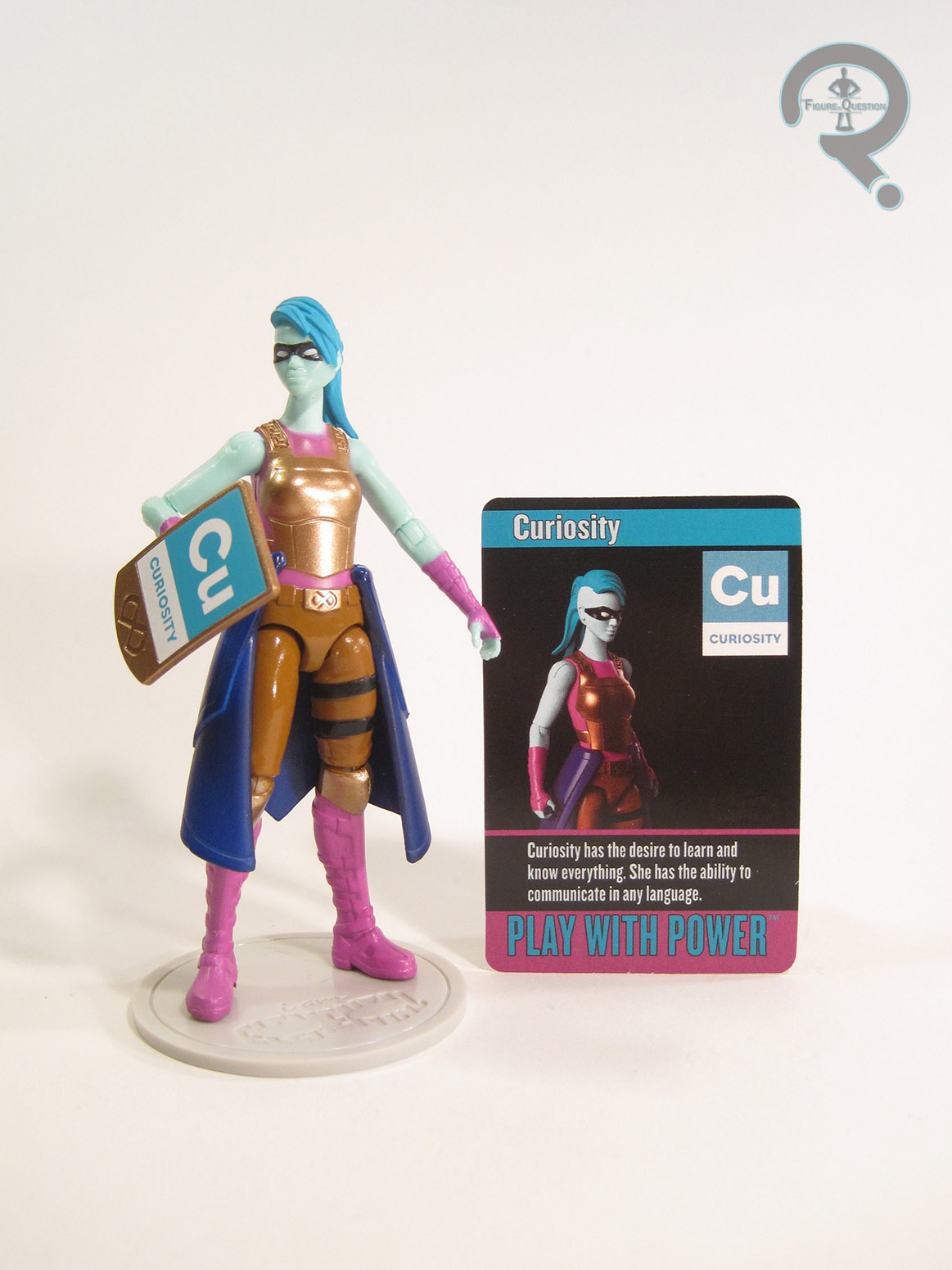 “Curiosity has the desire to learn and know everything. She has the ability to communicate in any language” Ah, so we’ve got a Cypher thing going on here. Obscure X-Men references by me aside, the communication angle is fun, and fits right in with the curiosity concept. It also places emphasis on communication, which is something we desperately need more of these days, so it’s a good message to send. At first, I though Curiosity’s design was a bit hodgepodge, but then it hit me: of course it is! She’s curious about everything, so why would she stick with one common design element? The kama is a neat design element, and helps set her apart from the others (and is also a nice thematic replacement for the usual superhero cape). She’s kind of a figure that I was uncertain about at first, but the more time I spend messing with her, the more I like her.