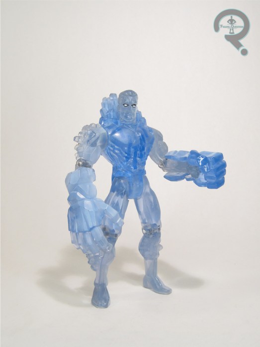 Iceman, and it sits pretty well on the changed out body. The last few Iceman figures have all gone transparent in some way, but this one goes for an opaque look, which better fits the animation. He’s got a little bit of cel-shading going on. It’s a little odd from some angles, but it’s largely pretty versatile. The only thing I don’t like is the white eyes. In the show, they were yellow (or possibly green, depending on how you view the exact shade), so as to further differentiate them from the rest of his face, and they should really be that way here, but they’re not. It’s an odd choice. Icemen is packed with two sets of hands, open and in fists, as well as the small ice-sled piece from the retro card release.