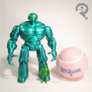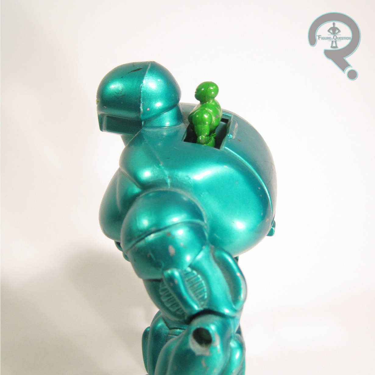 Warstar was another inclusion in the “Phoenix Saga” Series of Toy Biz’s X-Men toy line. He is by far the most obscure character in that particular mix, but he did at least get a little bit of focus during the cartoon version of the Saga, which made him at least somewhat memorable to the buyer base, I suppose. The figure stands 5 inches tall and has 8 points of articulation. He lacks a neck joint, but in his defense, there’s a sensible reason for that. As touched on in the bio up top, Warstar is actually two symbiotically-linked beings. The main body is C’cll, the larger of the pair. It does a respectable job of replicating his larger mechanical frame. He’s perhaps a touch more boxy than C’cll tends to be depicted, especially when Byrne was drawing him, but by and large, it’s a pretty close match. Borrowing a page from the previously released Tusk figure, C’cll has a little hatch and a small lever on his back. Sliding back the hatch and pushing up the lever reveals a tiny B’nee figurine, who’s been hiding back there the whole time. Both of them are just a touch underscaled for the line, and B’nee doesn’t get any sort of articulation, but it’s a fun feature nevertheless. Warstar’s paintwork is pretty solidly handled. It’s largerly all one color (for C’cll, anyway; B’nee *is* one color), but it’s a pretty slick metallic green. Mine’s taken quite a beating over the years, but that doesn’t seem like the worst thing in the world for a character with “war” in his name. The only extra included here is the small B’nee figure; no other weaponry or weird accessories thrown in this time. Also, he’s one of two figures in the “Phoenix Saga” assortment not to get any additional accessories when moved over to the larger card, presumably because of how sizable he was in the first place.