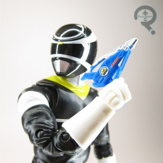 whatever reason, none of the joints really stay in place, so he falls apart a lot, especially at the arms. There are also opening flaps on the torso and lower legs, allowing for some storage space. The sculpt here actually recreates the show design rather well, and since it’s not sporting any sort of transformation feature, it even winds up being more show accurate than the standard Megazord release. The sculpt is generally pretty sharp in terms of detailing, and there’s not too many concessions made for translating it to toy form. The Astro Megazord’s color work is pretty much just the basics, but it does those well. The colors match okay with the show (the blue could perhaps be a shade lighter, but it’s very minor), and the paint application is overall clean and without notable slop or bleed over. Mine’s got some slight wear, but given how long I’ve had him, he’s really not bad. The Astro Megazord is packed with his sword, shield, and blaster, as well as a miniature Red Ranger and Astro Glider. Andros and the glider are far from proper scaling, but still pretty neat, and show that lean into the Action Fleet stylings most clearly.