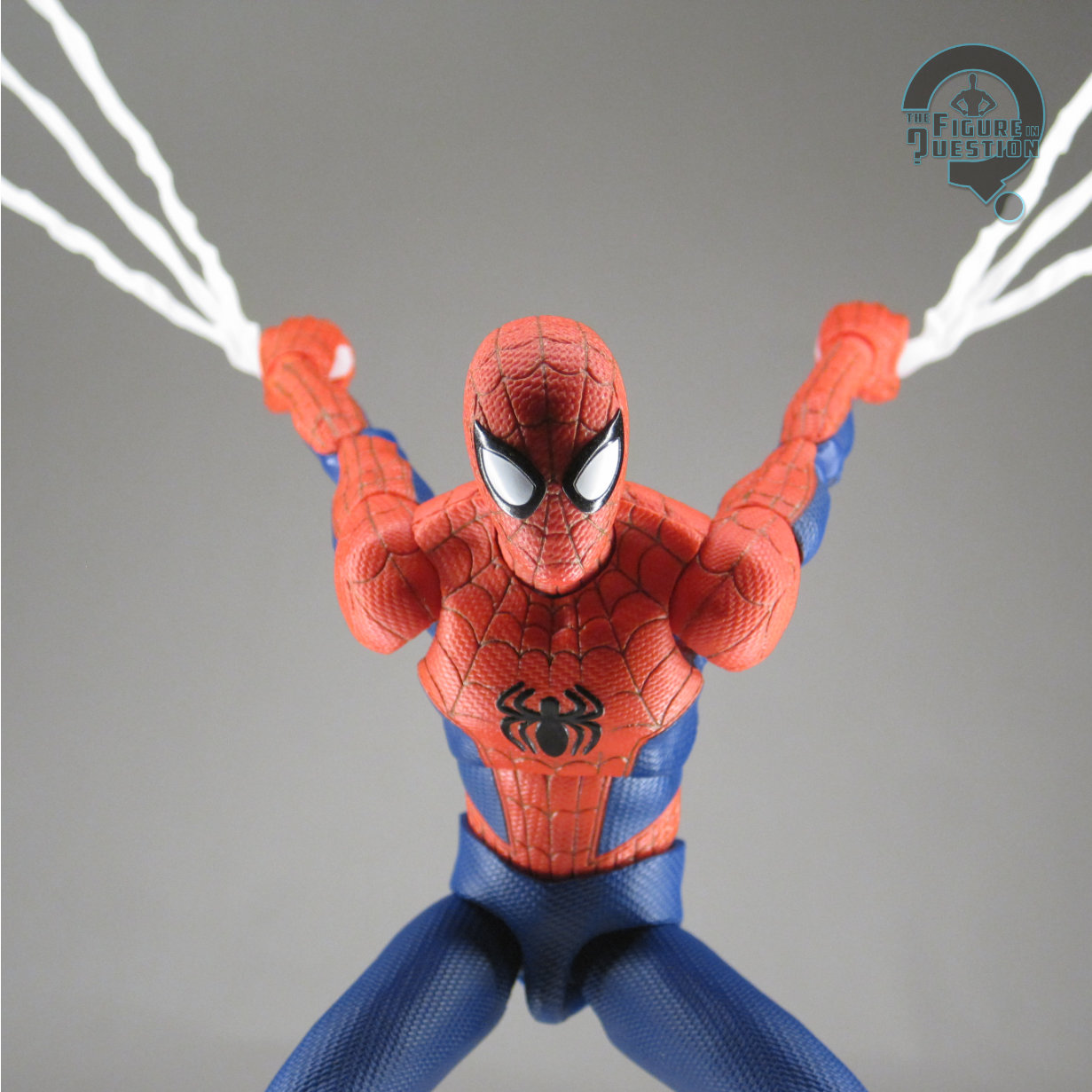 Peter Parker is part of the second Across the Spider-Verse tie-in assortment of Marvel Legends. However, like the standard Miles from this assortment, as well as the Peter B from the last round, he’s officially Into branded, since that’s the movie he’s actually from and all. We are, as of yet, still without any Peters at all from Across, but it’s not like I’m bitter or anything. The figure stands 6 1/2 inches tall and he has 34 points of articulation. He’s a mix of old and new parts, with the upper torso and arms from the Peter B figure from last year. It also looks like his head is the same as the Stilt-Man Series unmasked head. The rest is new, and it offers up some improvements to the articulation scheme. He’s now got the waist crunch like we’ve been seeing on more recent Spideys, as well as drop hips for slightly better range. Some of the joints are