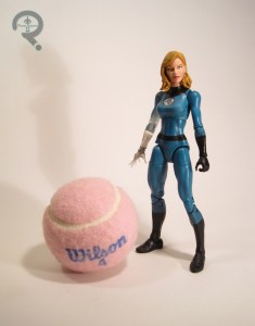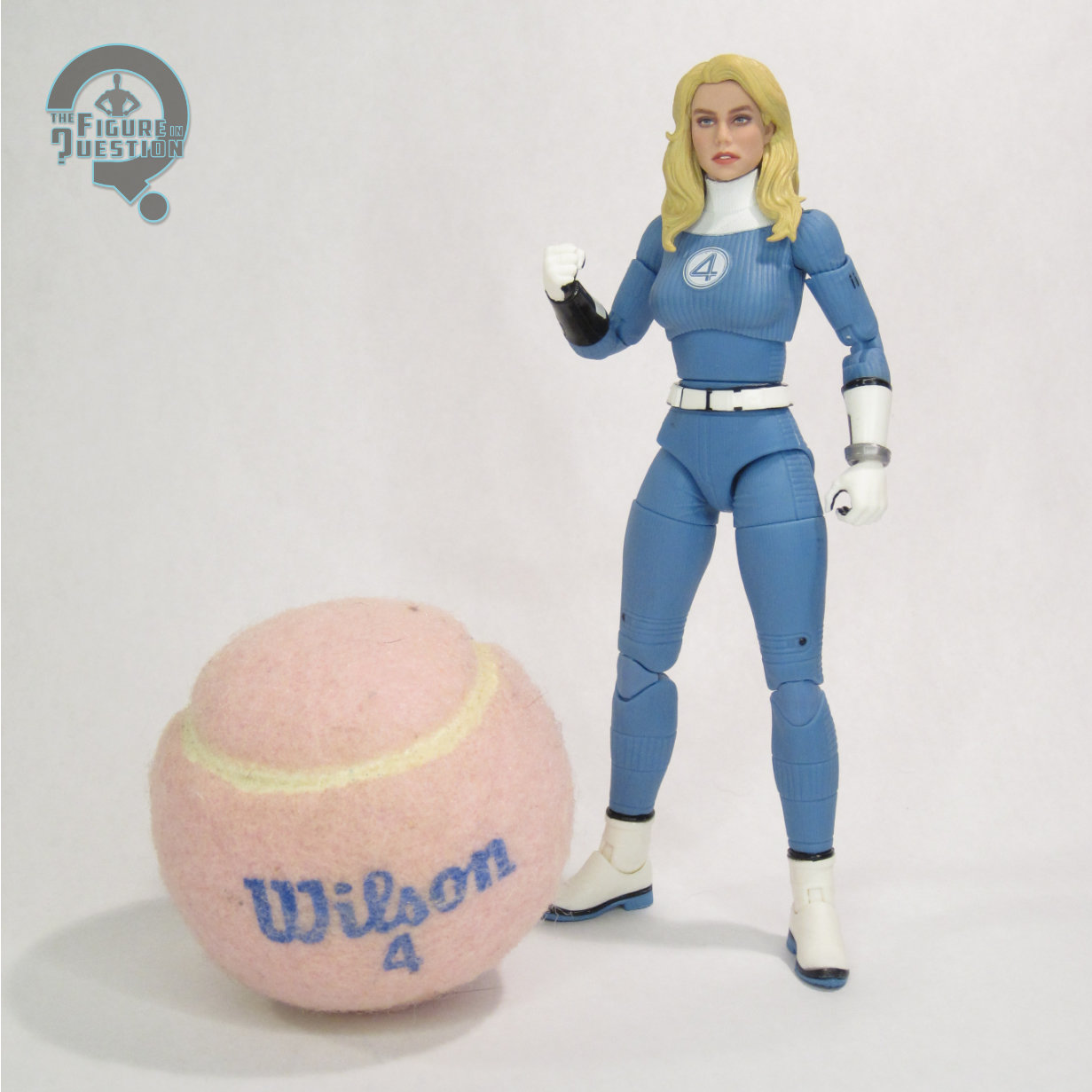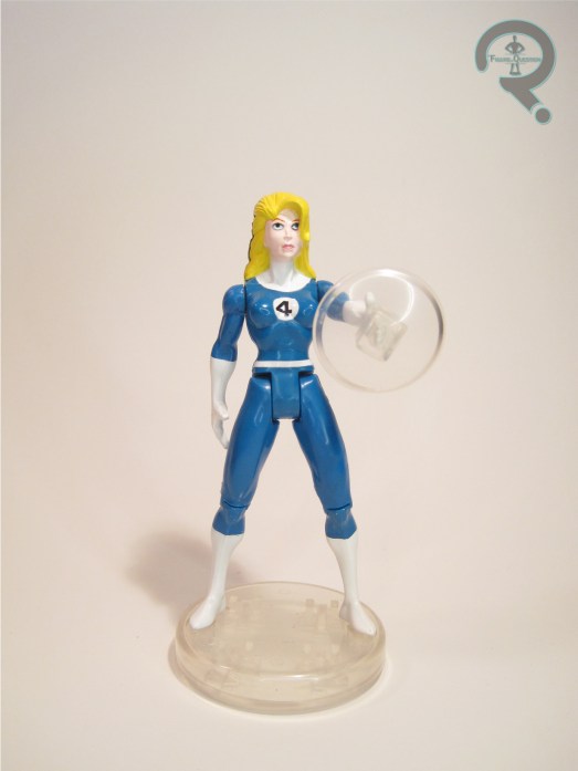 Also doing the whole standard uniform thing is Sue Storm/Richards, the Invisible Girl/Woman. At the time of the original figure’s release, she was already Sue Richards, but was still operating as Invisible Girl, which her original packaging reflected. She changed it to Invisible Woman during Byrne’s run on the book a decade after the original figure’s release, and that’s a change that’s stuck, so for the purposes of some synergy, her box has been adjusted with the appropriate name. She stands 8 inches tall and she has 16 points of articulation. Unlike the men, who get the new and improved