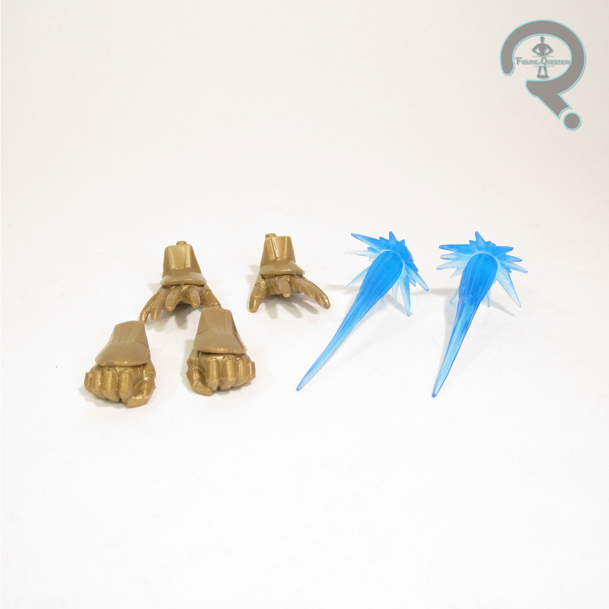 the application is all very clean. In particular, the markings and writing on the armor are a really good touch, and they’re very sharply defined. Iron Patriot is packed with six different pairs of hands (fists, two different styles of open gesture with spots for blast effects, and the same two styles without the spots for the blasts), a saluting hand for his right side, his shoulder cannon (which is articulated itself), two different styles of forearm plates (closed up and with the rockets out), four different blast effects, and a display stand. He also has a light-up feature in both the head and torso. The eyes are kind of dim on my figure, but the arc reactor is nice and bright.