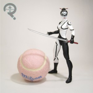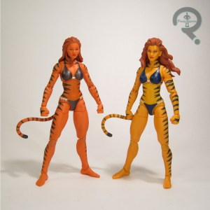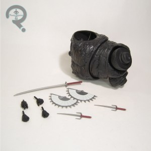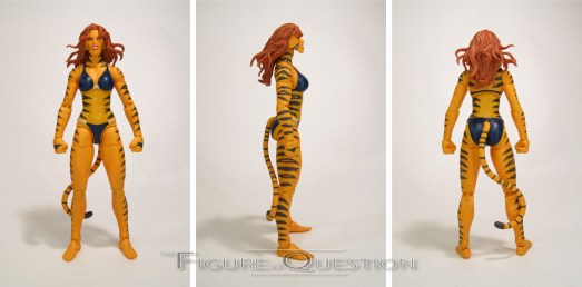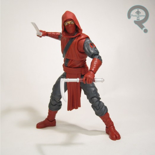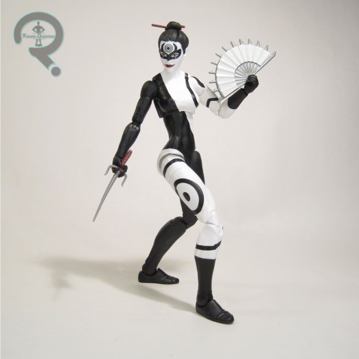 doing that more. Lady Bullseye gets a new head sculpt, which is a pretty nice piece. It matches well with her usual comics depiction, and manages to give her an expression that doesn’t look totally devoid of emotion, which is always a plus, especially for female characters. Her paint work does a pretty solid job of capturing her distinctive design, and doing it cleanly. Lady Bullseye is actually pretty well accessorized, with two sets of hands (in fists and gripping), a katanna, two sais, and two fans, as well as the torso piece for the Mindless One Build-A-Figure.