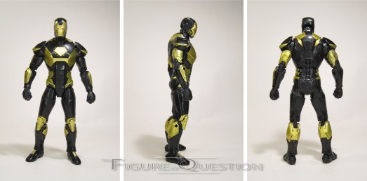 of the first Gamerverse Iron Man body. It’s a kind of stiff body in terms of articulation; it felt out of date when it was new, and it’s only gotten more so in the years since. The details also don’t quite match up with the game model, but they’re close enough to fudge it, I suppose. He does at least get a new head, torso, and shoulder pads, courtesy of sculptor Dennis Chan, to move his design a little closer to the game look. I generally like them more than the prior pieces, but it feels like there’s something off about the way the neck works, so his head sits up too high. You can pose it to look a little better, but it remains somewhat awkward to work with. His color work follows the game aesthetic, making him black and gold. It’s similar to his Marvel Now! design from the comics, and doesn’t look terrible here. It’s at least somewhat unique. The application of the paint is pretty cleanly handled, and isn’t missing any major details, which is a plus. Iron Man is packed with two sets of hands (in open and fists), as well as two blast effects in red, and the right leg of the Mindless One Build-A-Figure.