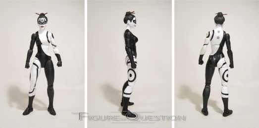 Hey, you know Bullseye? Well, make him a woman, and you’ve got Lady Bullseye. Okay, it’s a touch more involved than that…but not as much as you might think. Lady Bullseye was introduced during Ed Brubaker’s Daredevil run and hasn’t ever really had anything of note done with her; mostly, she just gets used to stand-in for Bullseye proper when he’s not around. At the very least, she gets a pretty cool and unique design, rather than just being stuck with some derivation of Bullseye proper’s costume. The figure stands 6 1/4 inches tall and she has 29 points of articulation. Lady Bullseye’s base is the same combination of existing body parts that Spinneret used. It’s not a terrible set-up, since it’s got a good articulation scheme and fairly balanced proportions. It’s only rather frustrating point is how many holes there are on the back of the torso, just from all of its prior uses. The WCA Spider-Woman had used the Dagger torso to avoid this issue, and it honestly worked pretty well, so it’s a shame they aren’t