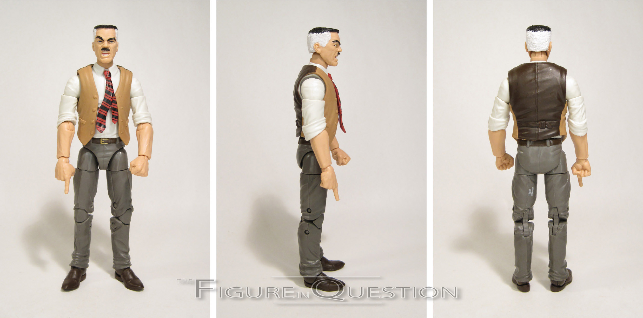 Perhaps Spider-Man’s most persistent antagonist, J. Jonah Jameson’s actually not part of the “Death of Jean DeWolff.” In fact, his absence from New York at the time is a fairly prominent plot point. But, I guess that sort of makes him important to the story in his own way. JJ has actually been a Minimate before…kind of. A Jameson mask was included with the variant version of Chameleon way back when, but this figure rightfully gives Jameson his own due. Jameson makes use of five add-on pieces, for his hair, vest, tie, and sleeves. The hair is a new piece, depicting Jameson’s distinctive flat top. It’s a nice piece, and a noted improvement over the much less detailed offerings of the past. The rest of his parts are re-used, with his vest coming from the Ghostbusters Mayor, and the sleeves and tie coming from The Spirit. It’s a nice combo of pieces, and it gives him a very unique, character specific feel, all without actually needing many new pieces. JJ’s paintwork is fairly standard stuff. The blue certainly looks nice, and the detail work on his face in