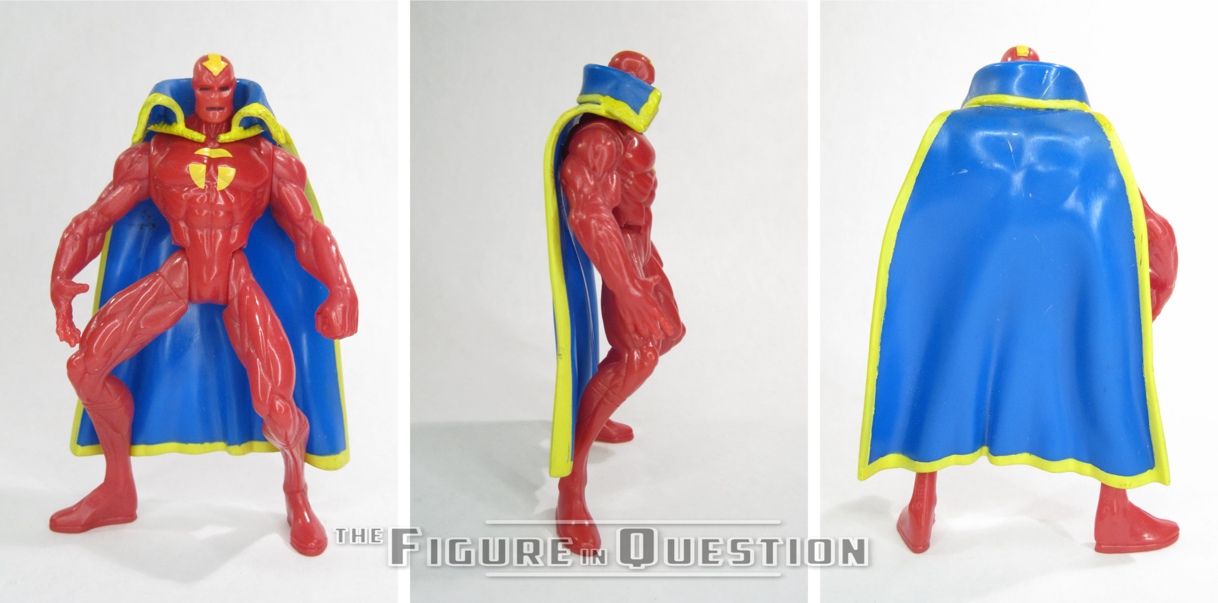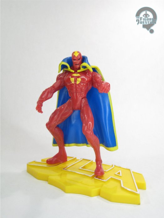 Huntress was a later addition to the JLA in the comics, and also had been a late addition to Total Justice, hitting during the ill-distributed final wave of the line.  As such, she’s one of two odd-ball characters included in these sets, without a Hologram duplicate in the alternate.  She’s seen here in her mid-90s attire, which she quite fortunately kept through both Total Justice and JLA’s runs.  I’ll admit, it doesn’t quite hit the same for me as the later Jim Lee redesign, but I guess it’s not a terrible design.  The figure stands a little under 5 inches tall and she has 5 points of articulation…technically.  Of course, the hair costs the neck almost all of its movement, and the hips are at an odd angle.  Like, not quite v-hip, but not straight t-hip.  So, it’s really just the arms that do anything.  That all said, her sculpt’s honestly one of the better ones from the line.  Her pose isn’t anything too crazy, she’s surprisingly stable on her feet, and her face lacks the weird intensity of most of the others.  Her cape is also pretty basic, with enough flow to prevent it from looking too stiff, but not anything that looks *too* crazy.  Huntress’s Total Justice color scheme went for the comic style shading, giving her a purple and blue outfit.  For the JLA release, that was translated to purple and black, which definitely looks a little bit sharper.  Her TJ figure got a crossbow and fractal armor (which are both missing from my figure), while the JLA figure got the crossbow, a purple display stand, and a backer with JLA #13 on it…which is interesting, because, in addition to the cover being just a close-up of Martian Manhunter’s face, Huntress is also just not in the issue.  So, you know, there it is?