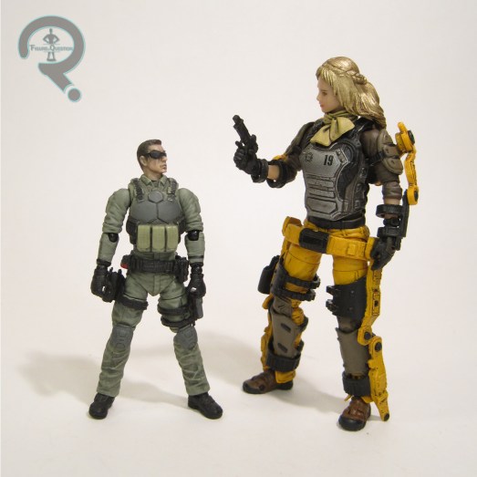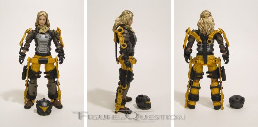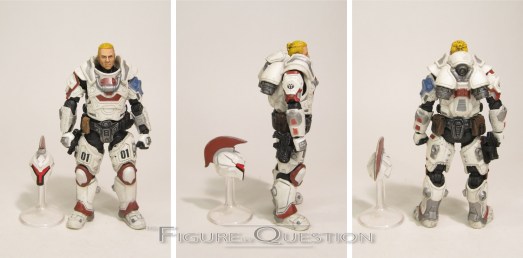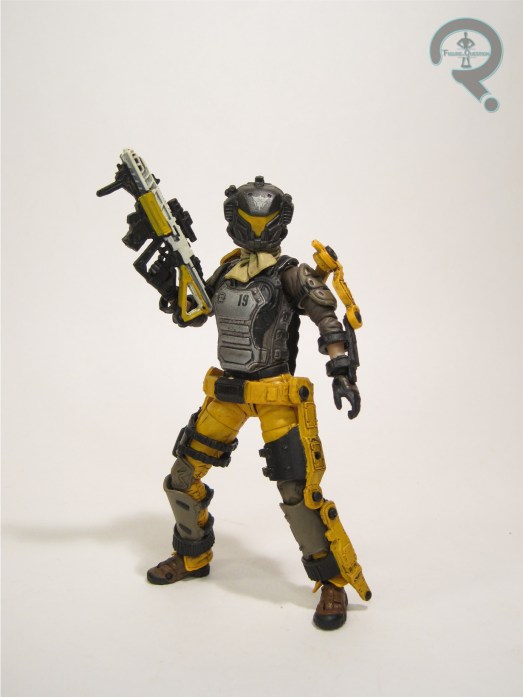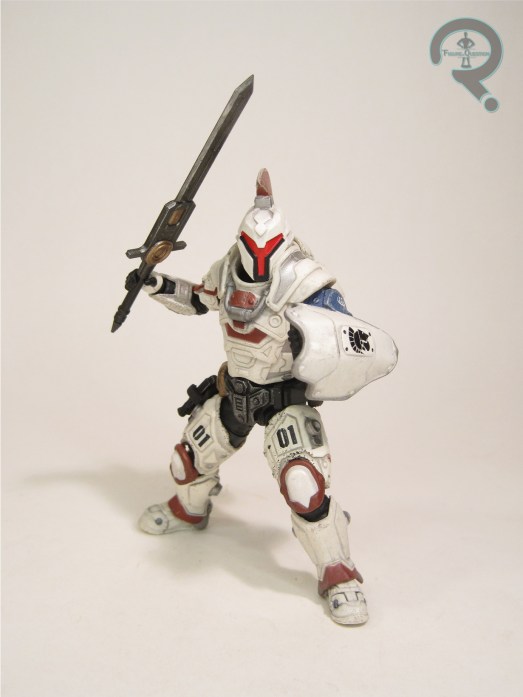 Joytoy’s actually put quite a lot of effort into the paint. Not only does the Blade Guard get all of the proper base coloring, applied quite cleanly and sharply, but there’s also an impressive amount of accent work. Clearly, he’s not as grimy and dirty as some of the miniatures can look, but there’s plenty of shading and smaller work, which showcases the sculpted elements quite nicely. The Blade Guard gets his blade, of course, which can be held in his hand, or sheathed at his side, two sets of hands for standard grip and trigger finger, a gun and corresponding empty holster for his belt, a holster with the gun stowed away, two removable pouches for the belt, a back pack with articulated thrusters, a shield with an articulated handle, and an alternate un-helmeted head. The weapons are a little tricky to get into his hands at first, but once you’ve done it the first time, they’re easier to use after that. The sword is actually kinda sharp, so do be careful with that. I had one minor issue with the gun, which had its ribbon come off, almost as if it wasn’t glued down at all; it was at least a pretty easy fix. The unmasked head is based on the second Blade Guard’s alternate head from the miniatures set, and it’s honestly not really my speed, personally, but it’s at leas cool from a technical side, I suppose.