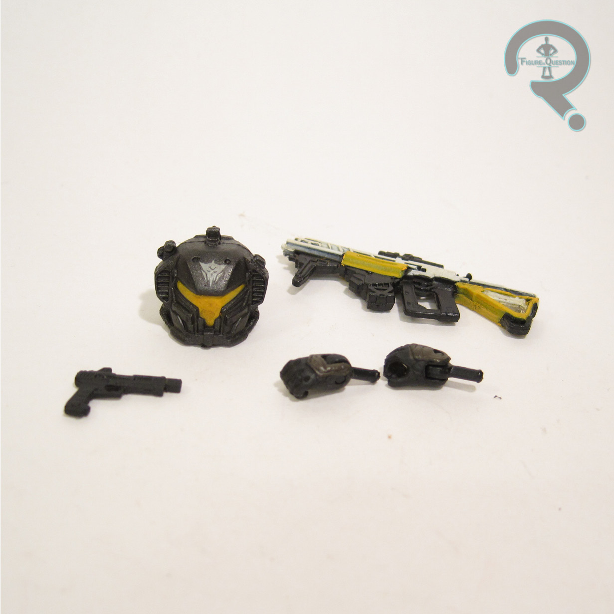 Joytoy’s actually put quite a lot of effort into the paint. Not only does the Blade Guard get all of the proper base coloring, applied quite cleanly and sharply, but there’s also an impressive amount of accent work. Clearly, he’s not as grimy and dirty as some of the miniatures can look, but there’s plenty of shading and smaller work, which showcases the sculpted elements quite nicely. The Blade Guard gets his blade, of course, which can be held in his hand, or sheathed at his side, two sets of hands for standard grip and trigger finger, a gun and corresponding empty holster for his belt, a holster with the gun stowed away, two removable pouches for the belt, a back pack with articulated thrusters, a shield with an articulated handle, and an alternate un-helmeted head. The weapons are a little tricky to get into his hands at first, but once you’ve done it the first time, they’re easier to use after that. The sword is actually kinda sharp, so do be careful with that. I had one minor issue with the gun, which had its ribbon come off, almost as if it wasn’t glued down at all; it was at least a pretty easy fix. The unmasked head is based on the second Blade Guard’s alternate head from the miniatures set, and it’s honestly not really my speed, personally, but it’s at leas cool from a technical side, I suppose.