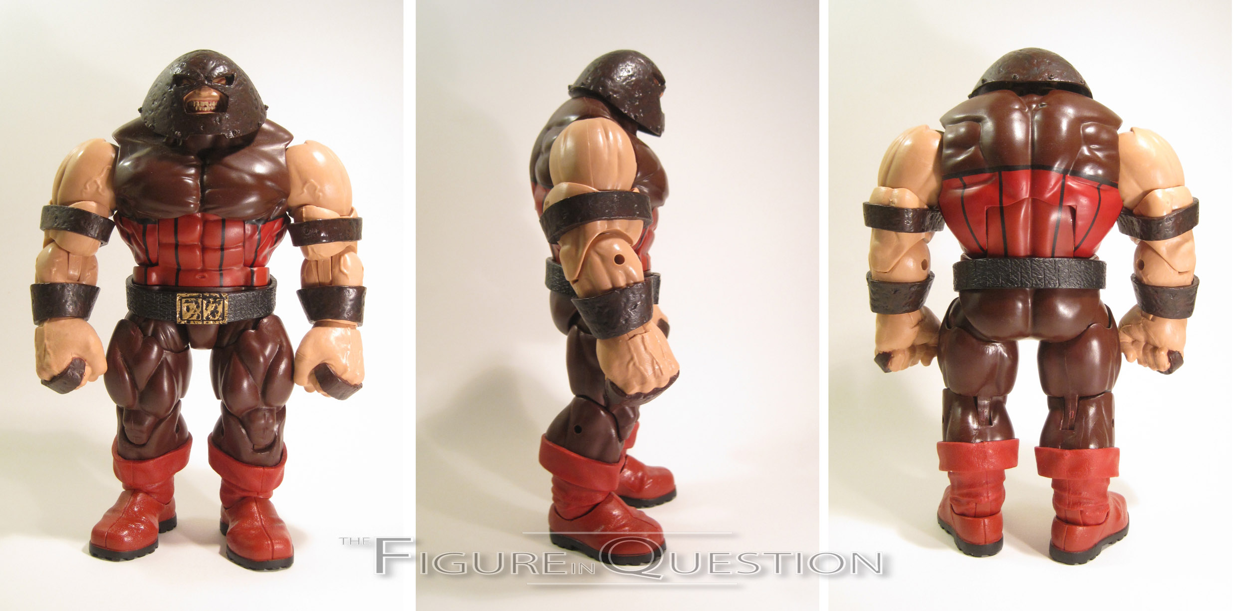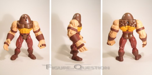 Nothing stops the Juggernaut…is a surprising phrase to attach to this particular iteration of the character, because, quite frankly, he looks like he could be stopped by a stiff breeze. The larger characters were still a ways away from getting any bulked up parts, so Juggernaut just gets his helmet and bracers. It’s definitely a different look, and makes him look a lot punier than he should. At least he has the slightly larger hands to give him something more. That’s better than either Hulk or Venom got. Juggernaut’s paint work isn’t quite as impressive as Logan’s, but there’s still quite a bit of detailing going on, especially on that face. Speaking of his face, since Cain’s visage is pretty much entirely covered by his helmet, Juggernaut was the very first ‘mate to get an alternate hair piece to allow for a sans helmet display. It’s not really the best piece ever, but it’s certainly better than nothing.