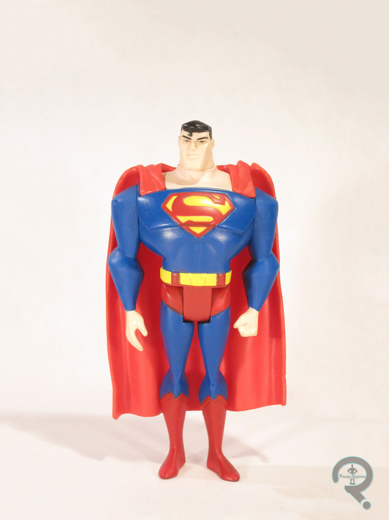 Kenner offered the initial figures for BTAS, and when they were bought out by Hasbro, Hasbro continued.  By the time of JL, Hasbro was interested solely in Batman and Superman variants, so they had no plans to release the team from the show.  Eventually, the license was moved to Mattel, and Mattel quickly released a set of the seven main characters.  Today, I’ll be looking at the Superman from that line.
