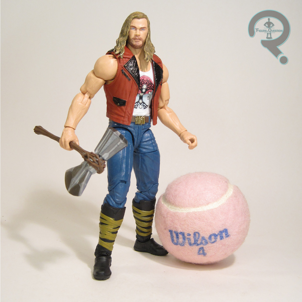 Korg is the titular Build-A-Figure for the Korg Series of Marvel Legends. It marks his second time as a Legend, following the Ragnarok version from the two-pack. This one is based on his upgraded attire from the new movie. It’s a little more personalized, since he’s not a gladiator anymore. There’s some fur, and a bit more color to it, making it a little more visually interesting. The figure stands just shy of 8 inches tall and he has 30 points of articulation. Korg is built using a number of shared parts from the previous version of Korg. It’s sensible, what with him being the same character, and the first version being a pretty solid piece of work and all. This one keeps most of the arms and torso, as well as the feel, with a new set of legs, overlay for the torso, and head. Generally, it’s a pretty nice selection of new parts, matching well to the quality of the original parts. The head’s not super different, just with a slightly different expression. This one’s a little more serious, though still not too serious, because, you know, it’s Korg. The new legs notably give him actual pants. That’s a nice improvement for him, I guess. What’s not so much of an improvement is the hip movement. He can’t actually get his legs to sit straight down for a standard standing pose; he’s always got to be low-key spreading his legs. The figure’s color work is fairly decent. The design allows for a brighter, more eye-catching look than the last one. The application of the paint is pretty clean, though there’s not a ton going on in the way of accenting, much like with the rest of the assortment. On the one hand, it’s a bit of a bummer, but on the other, it means there’s not a lot of mismatched shading, as can happen on some Build-A-Figures. Korg is packed with his mace-thing, which appears to be the same piece as included with the last one, just with a slightly different paint scheme.