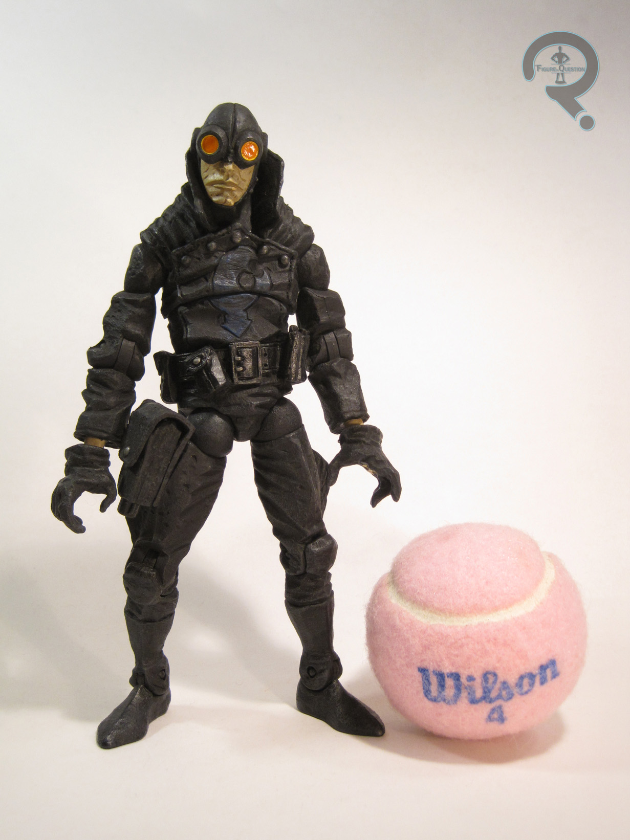 Lobster Johnson was released in the single-carded assortment of Super 7’s Hellboy ReAction Figures line, much like the Abe Sapien I looked at a little while back. Lobster was the only non-BPRD guy in the mix, but he’s Lobster Johnson, so he’s a pretty natural fourth figure. The figure stands about 3 3/4 inches tall and has the usual 5 points of articulation. His sculpt is rather basic, as is the line’s style. It strips him of a lot of the grit that Mignola’s art depicted, but it still works for Lobster and his more classical pulpy vibe. Like Abe, the head still feels a touch large for the body, but not terribly so. Lobster’s color work is rather basic, which is expected; guy’s always had a pretty simple look. The application’s decent, though, and the blue and orange details are quite striking. Lobster was originally packaged with a small gun, which mine is unfortunately missing. I guess he’ll just have to keep punching Nazis with his fists. Oh, darn.