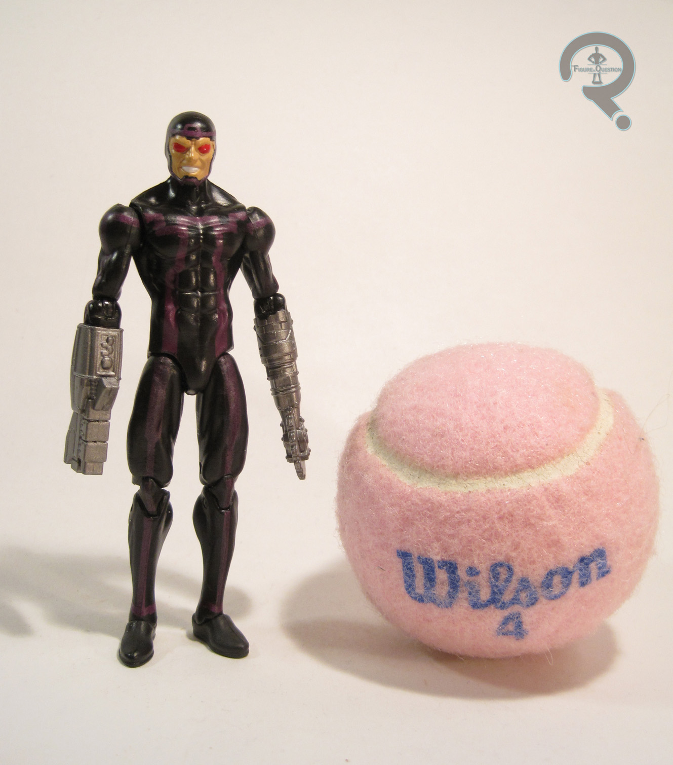 If you had told me five years ago that I would own two figures of Machine Man, I would have had a long hard laugh. Seems pretty out there to think that such a minor, low-tier character would warrant multiple figures, within a year of each other, but hey, here we are. The figure stands roughly 4 inches tall and has 19 points of articulation. This Machine Man is decidedly more modern take on the character than the larger figure. He’s based on his Tron-styled post-Nextwave design, which I believe is still his current look. More specifically, the character-unique parts (his head and forearms) are directly based on Daniel Acuna’s Avengers 50th Anniversary poster. The real tell here is the forearm configuration; he’s got a buzzsaw and a Sci-fi blaster sort of thing, which are lifted right from the poster. The sculpts are all pretty solid work; the technical stuff on the arms is particularly sharp. The head’s details are a little soft, but they stand out well enough for the scale. All in all, the parts look good, and match up with the mid-sized body that the figure is built on. Machine Man’s paintwork is passable; the general application is pretty clean, though the face is a bit sloppy. The metallic purple is pretty cool, but it probably would have looked a bit better if it were a little brighter, so as to stand out more from the black base color. Machine Man includes no accessories, not even an extra set of normal forearms, which ends up being a little bit limiting.