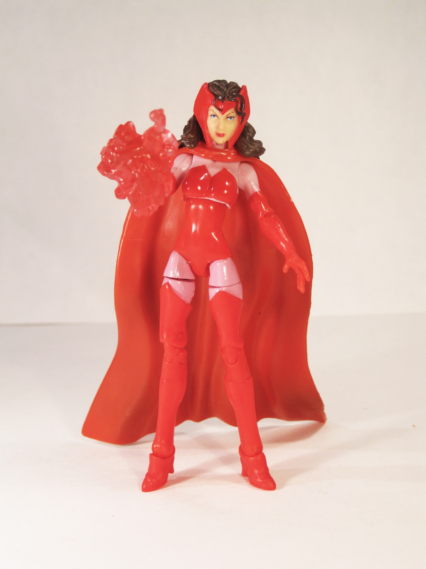 Moving downward on the scale chart, we get to my personal favorite figure from the set, Goliath. He’s based on Hank Pym’s first costume for his third identity. Confused? That’s okay. Most people are. This figure ends up being the most unique of those offered in the set, mostly due to his color-scheme. The figure stands a little over 6 inches tall and has 32 points of articulation. He’s based on the ML Infinite Series Bucky Cap body, just like the single release Giant-Man. The body’s a pretty great base for a lot of characters, and it fits Hank rather nicely. Goliath gets a new head sculpt; it’s a little on the soft side as far as details go, but it’s pretty good overall. It’s a nice, classic hero-style head, and it isn’t too struck with the level of same-ness we’ve seen on a lot of Hasbro’s male heads in this scale. The figure also gets a new add-on piece for his belt, which is a little bit loose, but pretty well sculpted. While I like this figure a lot, oh boy did he get hit with some seriously messy paint. The colors are pretty nicely chosen, but the flesh tones are really thick and goopy, and the yellow has been applied too thinly in many areas, causing the blue of the plastic to bleed through. He’s also got some random scratches of blue on both forearms, where the glove paint has chipped. Viewed as a whole, the figure is alright, but he would have been a lot nicer if the paint had been even a little bit better. Like Giant-Man, Goliath has no accessories of his own.
