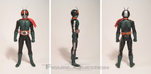 So, what’s all this “Masked Rider 2” business, you’re probably asking. I’ll tell ya. During the production of the first Kamen Rider series, lead actor Hiroshi Fujioka injured himself performing a stunt. The producers of the show had a few options. They could replace Fujioka with another actor and hope no one noticed, they could have him get some sort of plastic surgery, or they could come up with a reason for Fujioka’s Hongo to leave the show and introduce an interim replacement. They opted for the last choice, and introduced the franchise’s first secondary rider, Hayato Ichimonji. Ichimonji took over as the main protagonist of the show for about half a season, until Fujioka was able to return, at which point Ichimonji and Hongo shared the title. And now you know all about Masked Rider 2! There have been a few prior versions of Kamen/Masked Rider 2 from SHFiguarts, but it would appear that this set is the most recent, hitting in 2015. He’s based on Ichimonji’s first main design, which was fairly similar to the original Kamen Rider’s in a lot of ways. The figure stands about 5 1/2 inches tall and he has 32 points of articulation. He’s very similar in construction to prior Figuarts offerings, especially the Power Rangers and the like. His sculpt is unique to him, and it’s actually pretty solid. It does a nice job of translating his design into figure form, all while allowing for articulation and maximum posability. His proportions are a little bit optimized, of course, as is the style of the line, but it certainly works for this guy. The level of detail, especially on his helmet, but also on his belt, is incredibly impressive. The paint on Ichimonji is all pretty sharp and clean, and the colors match up pretty well to his screen counterpart. He includes several different sets of hands in a variety of poses. There’s fists, two different flat palms, an open grip and a bike grip. It’s nice to have the variety, but I’m pretty much only ever going to use the bike grip ones. He also includes two different tail attachments for his scarf. One is flat and one is dynamic. But honestly, who’s ever going to use anything but the dynamic version?