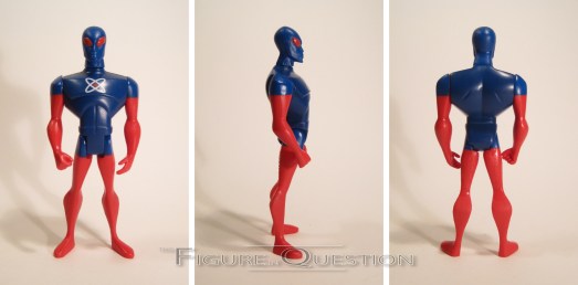 Micron was released in 2012 as part of Mattel’s Justice League Unlimited line. He was originally packed alongside his teammate Aquagirl and the future version of Static Shock. Both he and Aquagirl never actually showed up in Justice League Unlimited, but at this point, the line had more of an anthology thing going on. The figure stands about 4 1/4 inches tall and has 5 inches tall. He was built using the small male body, with a new head. While the base body was decent enough for Micron in terms of build, he definitely seems a little small. Just one of the sacrifices of doing a line based on this sort of model, I suppose. Also, as a later in the line figure, he’s got the really weak ankles that plagued a lot of these guys, meaning he falls over at the drop of a hat. It gets rather annoying. The head is a pretty nice recreation of Micron’s look from “The Call,” though it does seem a touch too big for the body. Still, not terrible. The rest of the work is all in the paint, which is pretty decent overall. The application is clean, and work on his logo is certainly sharp. The red’s a good shade, but the blue seems a little light. It’s hard to say, because in the show, the blue sections of his costume were actually black with blue highlights, so how that’s supposed to translate into an actual figure is anyone’s guess. Micron included no accessories, not even a little mini Micron, which seems like a real missed opportunity.