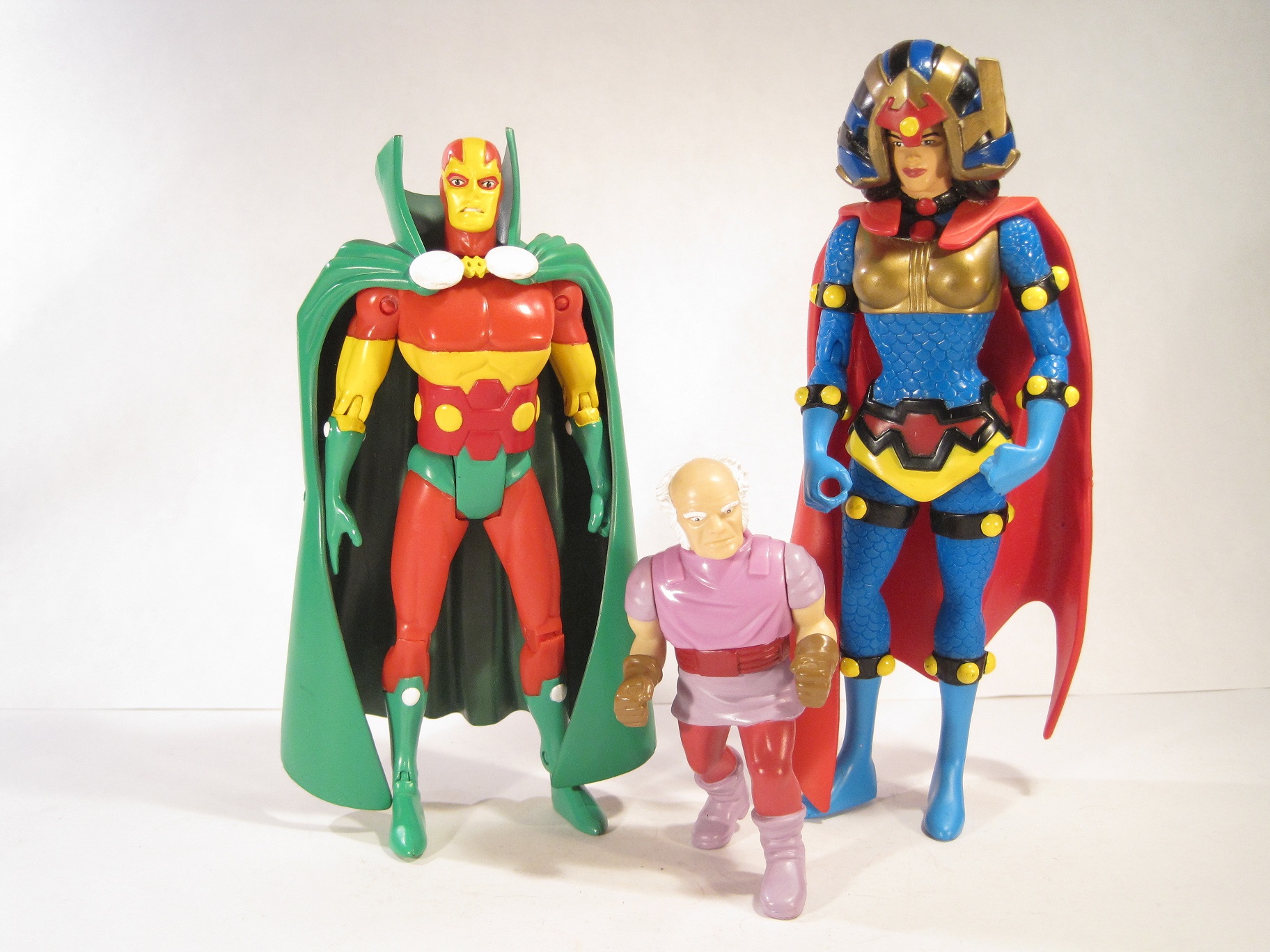 Mr. Miracle was released as part of Mattel’s Justice League Unlimited line, first arriving in 2007 as part of a three-pack with Orion and Darkseid, and then again in 2008 in a larger New Gods-themed six-pack, and once more in 2009 in a pack with Plastic Man and Cyborg. None of them were super easy to find, so he remained a tricky one for most of the line’s run. The figure stands 4 3/4 inches tall and he has 5 points of articulation. Mr. Miracle is built on the larger male base body (retooled from the original Superman mold), which seems a little too large for Scott, honestly. I feel like the medium/GL-retool body might have been better, especially since it would have kept him shorter, thus working a bit better with the line’s take on Barda. Perhaps they felt that base was getting a little over-used? I don’t know. It’s not terrible, so I won’t harp too much. He gets a new head and a cape add-on piece, which work well. The head’s a little larger, which keeps the internal scaling better, but looks a little strange next to the rest of the figures. It’s a good rendition of his animation model, though, which is a plus. The cape is thick and stiff, but it’s a solid sculpt, and it’s got a nice flow about it. Mr. Miracle’s paint work is doing the heavy lifting, as was the case for most of this line. It’s generally decent, with the proper colors and the like. The application’s a little fuzzy on some of the edges, especially on the greens. Also, the paint is rather susceptible to chipping, hence the missing chunk of green on his foot.