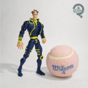 X-Man is the third and final figure in Toy Biz’s 1998 Marvel’s Most Wanted line. Its an odd line-up for the name it was given. At the time, Nate was the closest you’d get to a “heavy hitter” since he was headlining his own book (Blink would later headline Exiles, elevating her personal status a bit, at the same time that Nate was on the downswing; Spat pretty much never got time in the spotlight). In his solo book, Nate was constantly changing out his attire, generally keeping just a general feel of look, so to go with something more directly marketable, this figure goes back to his original AoA look, which, to be fair, he also sported for a bit in the main 616. The figure stands just over 5 inches tall and he has 14 points of articulation. He was honestly pretty solid on the movement front, but contains an interesting design oddity. His shoulder joints consist of a mix of swivel and ball-joint assembly, with the ball joint pegging into a swivel joint on the main torso. Said swivel is ultimately redundant, since the ball joint can turn just fine on its own. Why is it like that? I don’t know. The sculpt here is one of the more stylized of the Toy Biz run, though that was kind of true in general for this particular set. He’s a bit pre-posed, with an odd sort of twist to the body, and he ultimately looks quite a bit elongated, especially the head. It does end up feeling pretty true to the character, though, so I can’t really knock it. X-Man’s paint work is generally basic; the suit consists of molded blue and painted yellow. Application’s all pretty clean, so no issues there. He’s packed with a rather involved display stand, presumably meant to replicate his psychic powers. It was one Toy Biz liked a lot; it wound up re-used for Astral Doctor Strange and the Marvel Legends Human Torch.