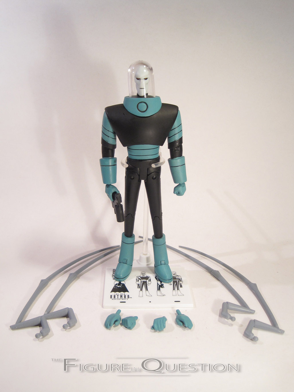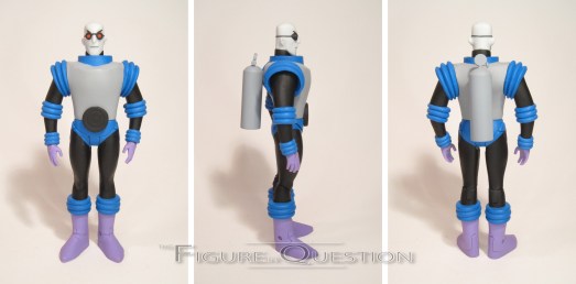 Four figures in and I’m finally getting to the one that actually matters! Yeeeeeeeaaaaahhhhh! …Sorry, that’s not really appropriate for Mr. Freeze, is it? He’d go for a more reserved, served cold sort of thing. Ah, yes. A Mr. Freeze figure. Of course. Would that it could warm his frozen heart. But alas, there is no hope for him. But hey, cool figure, right? The figure stands 6 1/2 inches tall and he has 22 points of articulation. Freeze has nay favorite sculpt of all the figures included here. He’s just really got the show design down pat. The best piece by far is the head, which just looks absolutely spot-on from every angle. The rest of the sculpt is a solid recreation of his suit design from the show, and it’s really only marred by one thing: the head dome. On its own, it’s fine, but it doesn’t fit the body quite right, so it never sits flush the way it should and it pops out a lot. It’s not awful, but it’s a minor annoyance, and there was no such issue on the last Mr. Freeze figure. If there’s a major downfall to this figure, it’s the paintwork. It’s not the worst I’ve seen in this line, but it’s definitely sloppy, especially on the blue parts of his suit. How they got the others in this set so clean and not Victor is honestly a bit baffling to me. Freeze is packed with his freeze gun, five sets of hands, a snow globe, and a display stand. Ready for the common theme of this review? Despite the large selection of hands, he can’t really hold his gun very well, and he can’t actually hold the snow globe as well. I appreciate the extras being included, but I wish they could be more adequately used.
