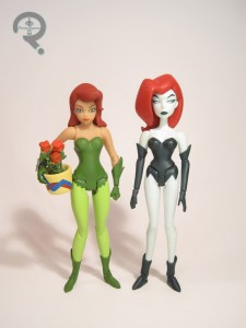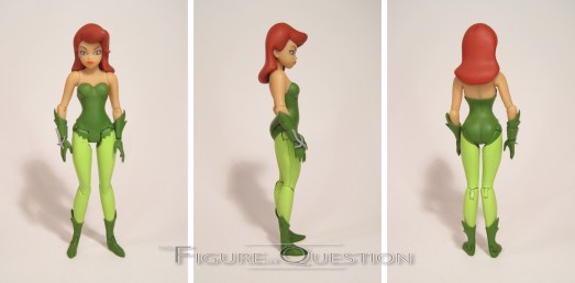 Last up, it’s Poison Ivy, the other hotly demanded figure in this set. I picked up the first Ivy figure, and I liked her overall, but she was certainly a flawed offering. I was sort of hoping that this one would fix some of those. It does, but there are some other ones that have cropped up to replace them. The figure stands 6 inches tall and she has 23 points of articulation. Her sculpt is…okay? It has its ups and downs. It’s definitely not anywhere near as accurate as the other figures in this set, which is a shame, really. She’s far more on par with the last Ivy, in that she looks okay from certain angles, but not so great from others. I do like that she doesn’t have the ugly seam running down the side of her hair this time. Unfortunately, she’s now got a rather ugly bend in her right leg, as well as a severely misshapen wrist bolt. It kind of ruins the aesthetics. The paint on Ivy is okay, but rather on the sloppy side of things. It’s especially bad on her legs, where there’s a few spots of errant paint. Ivy is packed wth five sets of hands, the Wild Thorny Rose seen in “Pretty Poison,” and a display stand. At least she has hands that can actually hold the rose. I guess that’s a nice change.