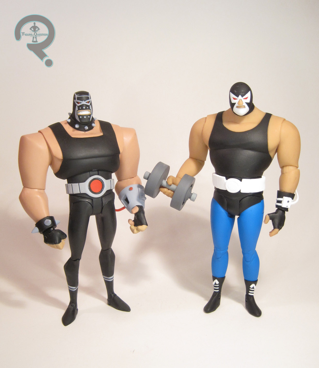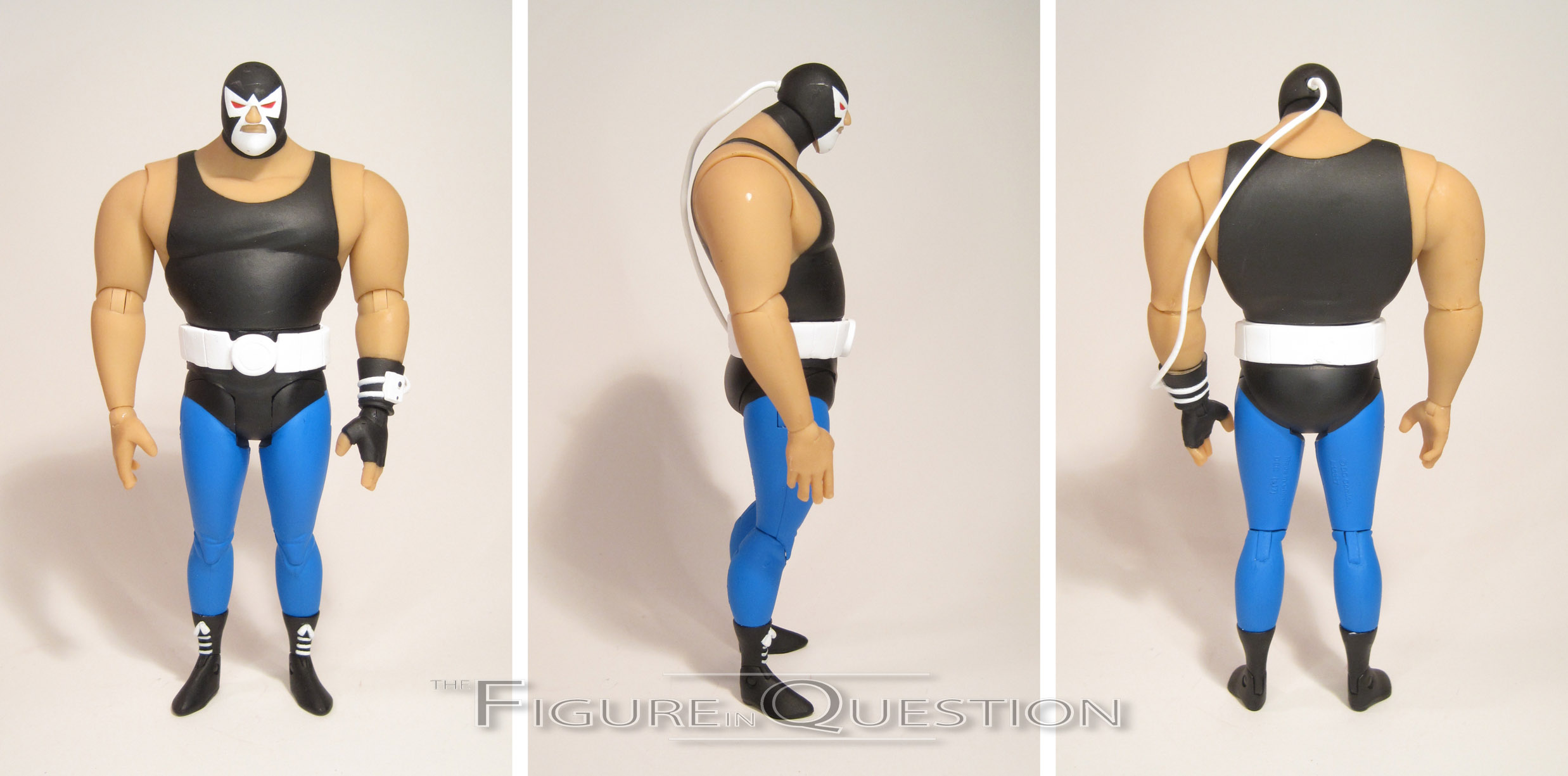 The New Adventures Bane was one of my favorite figures from the single-packed line, so this figure has a lot to live up to. I’m gonna let you all down easy here: he doesn’t. He’s not helped by the design, to be fair. The B:TAS Bane design is certainly one of the weakest from the original run of the show (part of why he got such a drastic redesign later). He’s not particularly intimidating or anything. He’s just looks like a slightly paunchy luchador. Not the greatest design for a villain. The figure stands 7 inches tall and he has 24 points of articulation. Okay, let’s get this out of the way: Bane can’t stand. Like, at all. Just getting the photos for this review was one of the most infuriating experiences I’ve gone through. The actual sculpt is decent, I suppose. It replicates the show design well-enough, but I find he lacks the playability seen on the last Bane figure. His paintwork is decent from a palette stand-point; he’s bright and colorful. The application’s a bit iffy, and he’s got several spots of random shininess on an otherwise matte finished figure. It’s rather distracting and makes for a fairly sloppy looking figure. Bane includes four sets of hands, a dumbell, and a display stand. The dumbell’s a nice extra, but, as with Montoya, there’s not actually a hand that can properly hold it. Doesn’t that seem like the sort of thing that you would want to double check before sending this figure out?