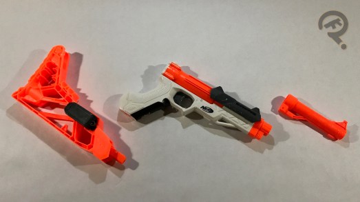 accessories that came with the Spectre were perhaps more highly sought after than the actual blaster. First off, the stock, while kinda flimsy, was the first example of a side folding stock to hit the market, so that was cool. Also, the barrel had the double distinction of having a bore wide enough that it wouldn’t affect performance, and it looked like a cool suppressor. The ergonomics of the blaster are pretty standard, functional but not mind blowing, though having both attachments on does make it feel like some sort of covert scout rifle, which is fun. Performance on the Elite version is substantially improved over the original but neither version is all that great, to be honest.