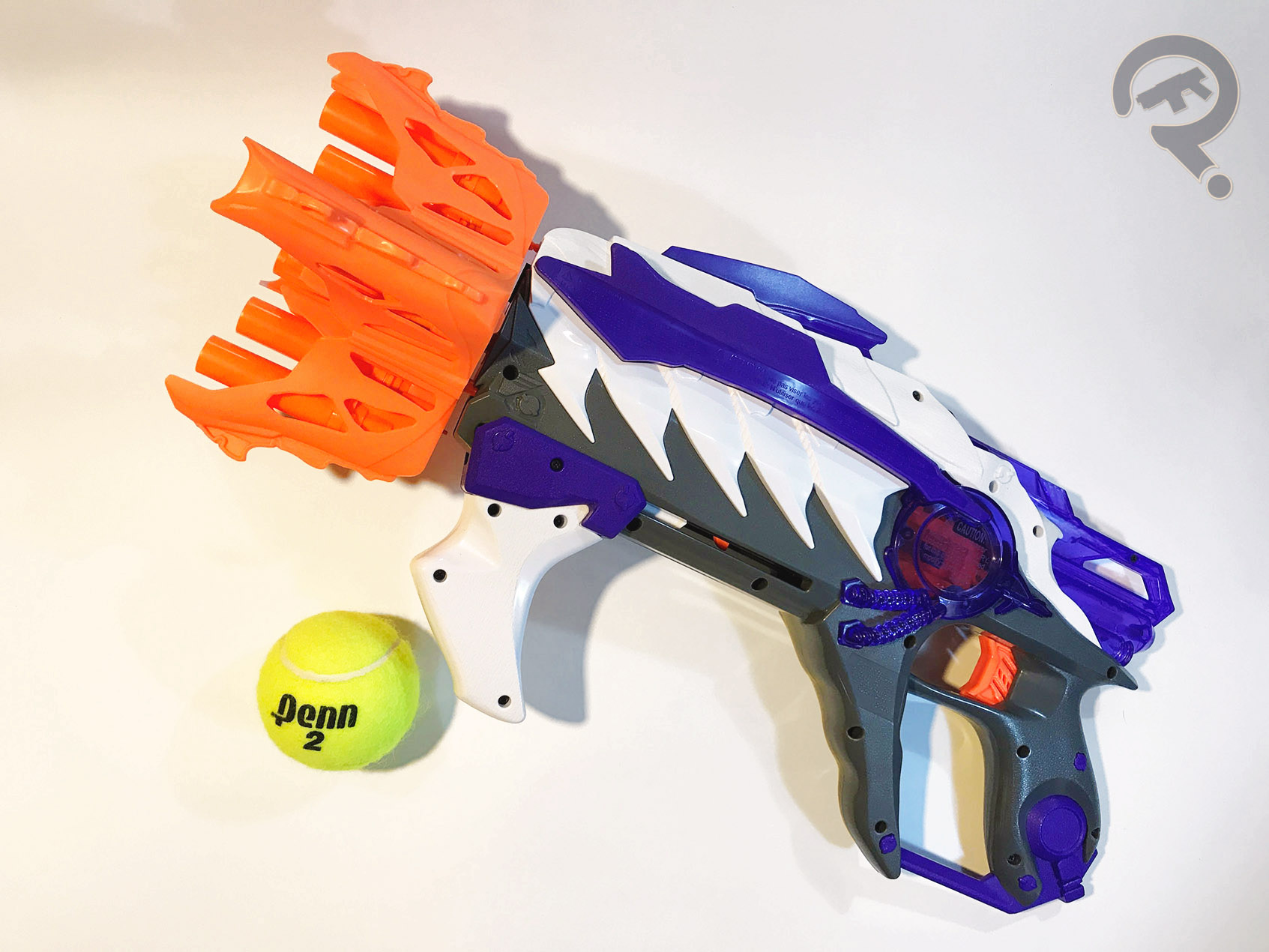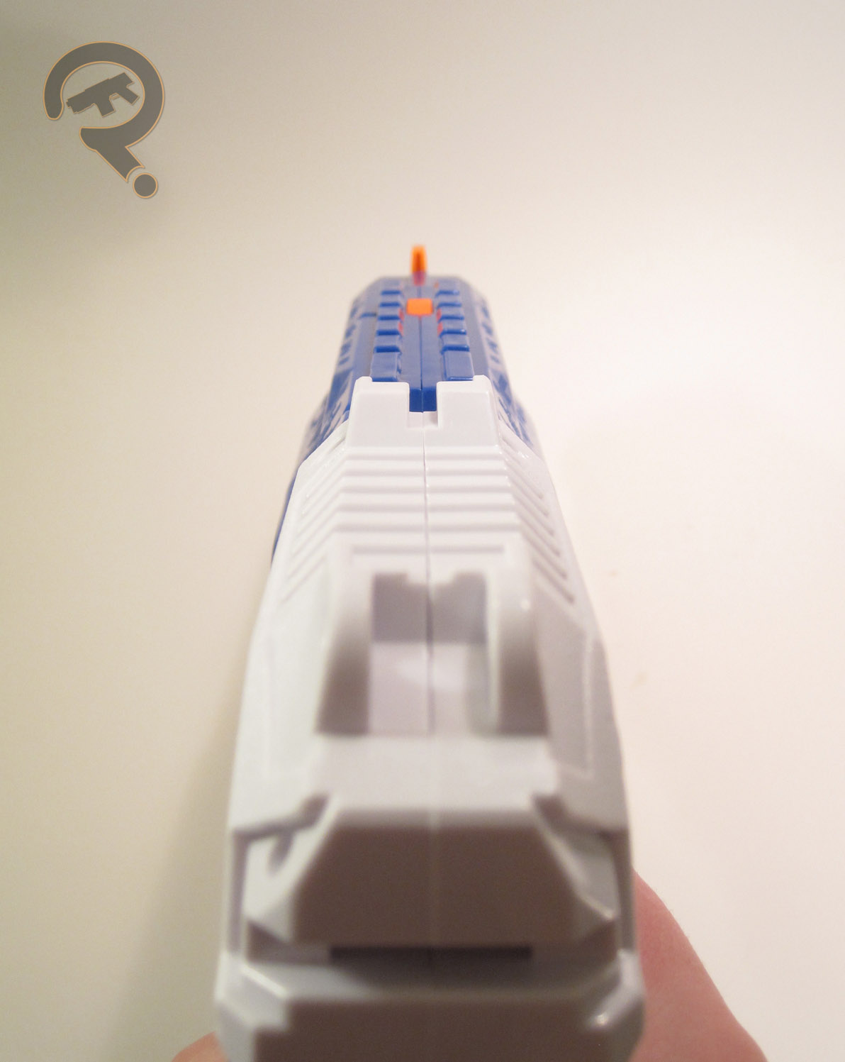 The Star-Lord Quad Blaster was released in 2014 as a Marvel tie-in product to coincide with the release of the first GotG movie. Interestingly, there is no Nerf branding anywhere on the blaster, but just a quick mention on the box. Aside from using a “smart air-restrictor” setup found in a plethora of other Nerf blasters, the Quad Blaster is completely original. The blaster is operated by priming one or both of the slides on the rear and pulling the trigger. Unlike the Roughcut and other similar blasters, the Quad Blaster does not have a staggered trigger, if both barrels are primed, both will fire simultaneously. In addition, the smaller secondary trigger just below the firing trigger releases the latches holding the spring-loaded front ends, causing them to snap back, revealing two extra barrels. In all honesty, this feature was 85% of the reason I got this blaster. It’s just a ton of fun fiddling with even if you’re not actively firing the blaster, and if you flick your wrist just right, you can reset the barrel covers without