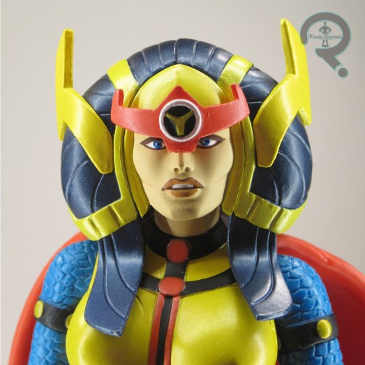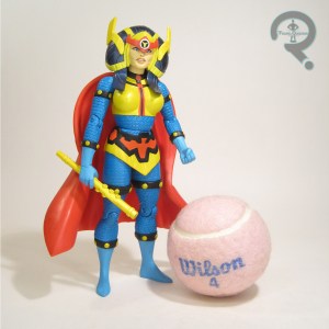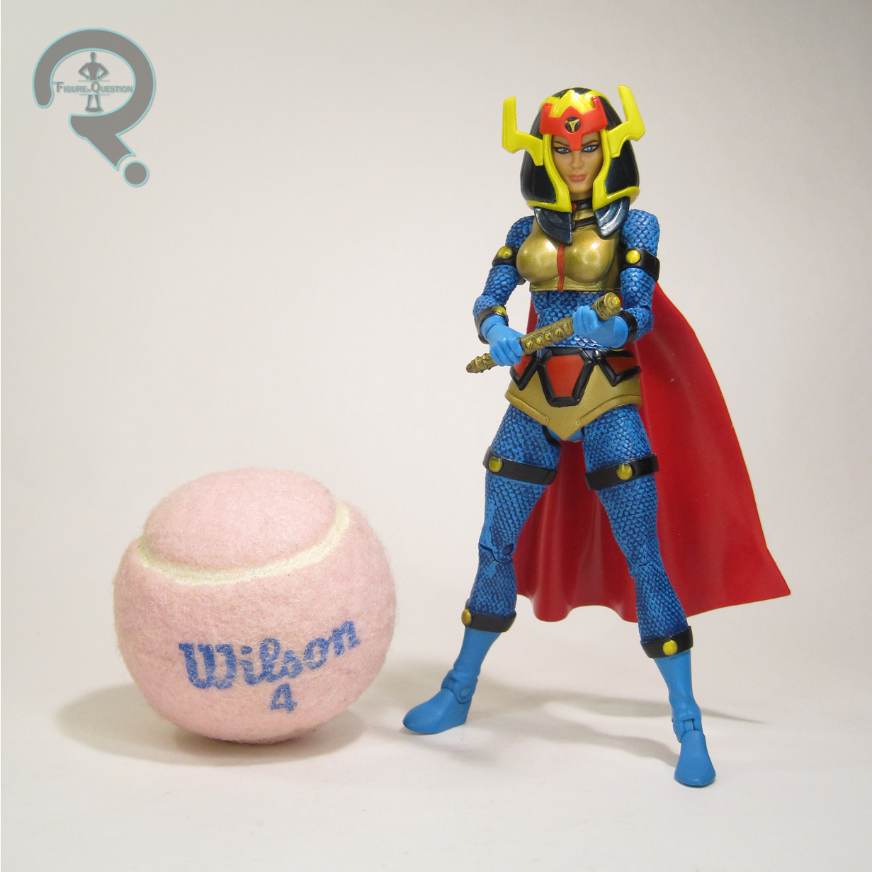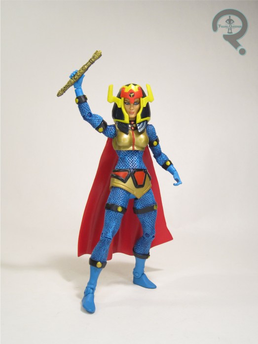 Big Barda was part of Series 7 of DC Universe Classics, which was the series that built Atom Smasher. Not that the two had any real ties or anything. There were two Bardas available, one with her helmet and one without. DCUC had two methods of handling variants: 50/50 splits and 70/30 splits. For some reason, they made the two Bardas a 50/50, meaning that half of the figures out there where a look that most people wanting a Barda didn’t want, resulting in it being the one that was everywhere. Great call, guys. But, I harped on that in my helmet-less Barda review. This one’s the good one…more or less. Barda stands about 6 inches tall and has 23 points of articulation. Now, the biggest…well, the most major issue with either DCUC Barda figure is sizing; Barda’s supposed to have quite a stature to her, commonly being depicted as about a head taller than the average male hero. Here, she’s taller than the other female heroes, but is in fact *shorter* than most of the men in the line. What’s more, she’s also rather skinny, again in contrast to how Barda’s always been depicted. Given the line’s precedent for bulking characters up from their usual depictions, it makes her really get lost in the crowd, especially compared to the other New Gods. What’s especially baffling about all of this, though, is that the most sensible explanation for her downsizing, which is the line’s reliance on shared molds, doesn’t hold up here, since Barda got a brand-new sculpt. Why not just make that brand-new sculpt a larger one? You got me. I’d ask the people in charge, but, well, that’s a whole other thing. The difference in the sculpt between this figure and the one I’ve already looked at is that, in place of a hair piece, she’s got a helmet. Of the two looks, the helmet is certainly the preferred, so she’s at least marginally better than the other release. Barda’s paint work is actually pretty good, so she’s at least got that going for her. In particular, the accenting on the chainmail sections of the suit is quite nicely rendered. Barda was packed with her Mega-Rod, as well as one of the arms to the Atom Smasher CnC. It’s a little light, and it’s a shame she didn’t at least get the hover discs that Scott had gotten a series prior. At least she got the Mega-Rod?