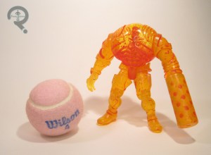 more so. There’s really nothing left of her original look, apart from her red hair, I guess. The rest of her look leans really heavily on the ninja thing, enough that this same sculpt was easily re-purposed into Chun-Li the same year. Scarlett’s headsculpt was actually a notable improvement over the less attractive original Scarlett head, better matching her depictions in other media. She makes use of soft-goods for both her pony tail and sash. They sort of lend themselves to being all sorts of curled up and messy, but they were a decent enough idea. Her paintwork is nice enough. She’s very green, which was an interesting contrast with the red hair. Not the most attractive color scheme, but not terrible when compared to some of the other figures from the same period of the line. Scarlett includes the same accessories as Snake Eyes, but molded in yellow instead of blue. My Scarlett’s missing even more of the extras, but again, with this many, it isn’t quite as much of a loss.