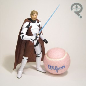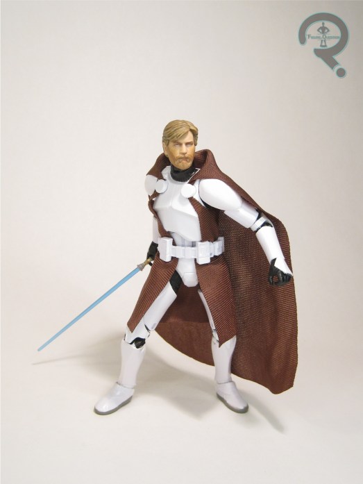 sculpt, which…well, it’s honestly not fair to judge it that harshly. It’s not a bad sculpt on its own merits; there’s more than a passing resemblance to McGreggor, and he’s not terribly far off from his look in the show. He’s a touch too clean and put together, I think is the real issue. Still, given that this one predates the other, I can’t knock it. The major change-up for this figure is the color scheme, specifically the shirt, which is now a lovely shade of blue. It looks quite spiffy, and makes him suitably different from the main release. To further differentiate him, he also gets a new cloak piece, as well as an all-new back-pack, both based on his stuff from the scenes with this look. And, he’s also still sporting his blaster and lightsaber, just like the other one.