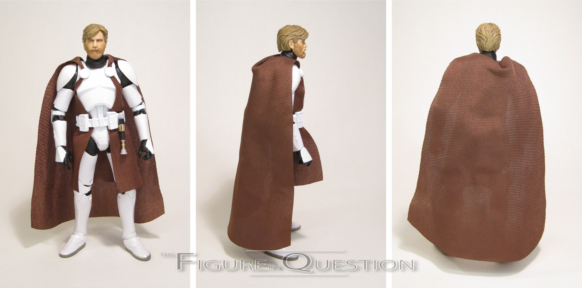 sculpt, which…well, it’s honestly not fair to judge it that harshly. It’s not a bad sculpt on its own merits; there’s more than a passing resemblance to McGreggor, and he’s not terribly far off from his look in the show. He’s a touch too clean and put together, I think is the real issue. Still, given that this one predates the other, I can’t knock it. The major change-up for this figure is the color scheme, specifically the shirt, which is now a lovely shade of blue. It looks quite spiffy, and makes him suitably different from the main release. To further differentiate him, he also gets a new cloak piece, as well as an all-new back-pack, both based on his stuff from the scenes with this look. And, he’s also still sporting his blaster and lightsaber, just like the other one.