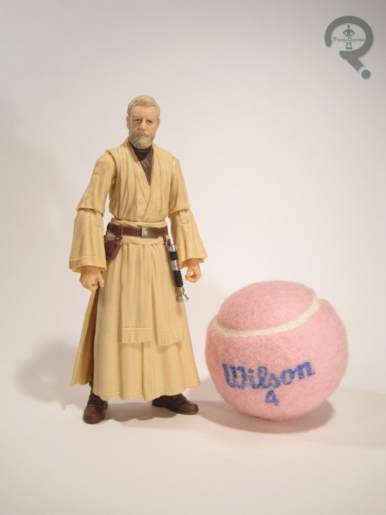 Patterned on his single-carded release from ’95, this figure aimed to inject a little more dynamism into the previous figure. Like that one, he stands roughly 3 3/4 inches tall and has 6 points of articulation. It feels sort of odd and recursive for a figure to add more pre-posing to one of the ’95 releases, but this was far from the only time the line did it, so I guess it was a bit of a thing. To be fair, Obi-Wan was one of the least stylized of the earliest figures, so I suppose Kenner just wanted him to get in on the ’90s pre-posed, super-roided fun. So, here he is, I guess? Despite looking similar, the only parts actually shared with the single are the head and torso, with everything else, including the robe, being retooled for his sick action pose. I’m…I’m not entirely what the pose is going for, if I’m honest. It’s not like Alec Guinness was breaking out the kung-fu moves when he whips out the saber at the bar, and even with the dramatically bent elbows, he still doesn’t have the ability to hold his saber two-handed, making the non-holding hand look even more awkward than the single-release, if I’m honest. The paint on this figure is pretty much the same as the standard, and he’s also got his lightsaber, albeit the shortened version. Shrinkage!