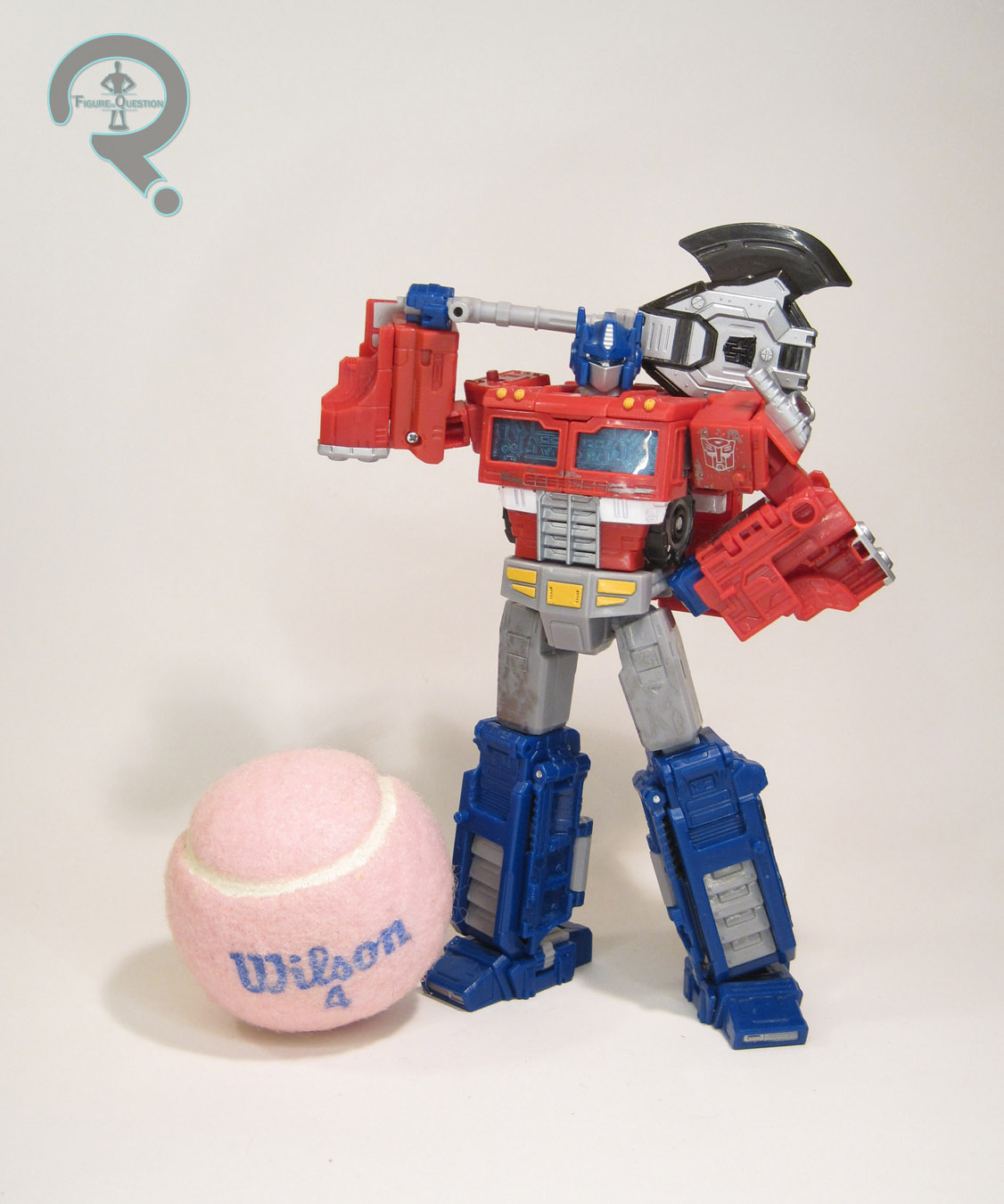 This figgu comes from this line that did the transformers as cartoons (Ethan: that would be the 35th anniversay line). He has the same body as the live colored Optimpusy but he’s colored like the original cartoon, which is why we get to review him becaus he jus a repaint of a figga that Ethan already reviewed some times ago. Octopus Slime is bigger than my hand by a quaterish of an inch…so maybe six some inches. He’s got 420 points of articulation. HA blaze. idk hoq mNY HE ACTUALLY HAS. He’s fourth in line to the throne of Cybertoner, and his bitty brother who is also possible multiple people passed thru a family thru generations is after him in line to the throne. He’s got these flappy dos that you find when trying to transform him that Tim says protects the royal nuts and bolts. What else about this figure?