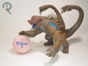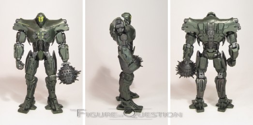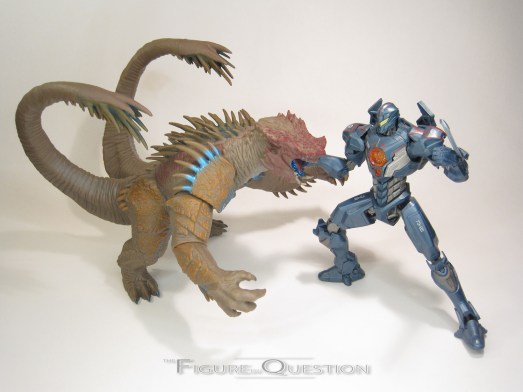 Shrikethorn was part of Bandai’s Sofvi Spirits line, as one of three Uprising-themed figures in the line. The Jaegers were covered by the more conventional action figure stylings of the Robot Spirits line, but for the much larger designs of the various Kaiju, it’s not really quite as cost effective to produce solid, fully articulated figures. So, these figures take a page out of the same book as the likes of the Ultra Hero 500 and Ultra Monster 500 lines, crafting the figure from a soft (and hollow) vinyl and cutting back on the articulation. It makes for a much lighter, and slightly less detailed figure, but it also means that getting the Kaiju in the same scale as the Jeagers is attainable without dropping rather insane amounts of money. The figure is about 6 inches tall (with a bit of a hunch, of course), about just as wide, and has 7 points of articulation. The articulation’s really not meant for getting much variance of poses; it mostly is there to help add more balance when getting the figure standing. For a big monstrous thing like Shrikethorn, it’s not really like there are going to be a ton of poses needed. He’s good for looking rather menacingly at your Jeagers, which is kind of the main point here. Being made from a softer material, his sculpt is understandably a little softer when compared to the likes of the Robot Spirits figures, and especially when compared to the NECA figures. That said, all of the important details are there, capturing the broadstrokes idea of Shrikethorn’s design quite well. Most importantly, they get the silhouette down, and that’s really were this figure’s success lies. Shrikethorn’s paintwork is respectable enough for what it is. Again, when compared to something like NECA, it’s a little soft, a little cartoony, and a little simplified, but the slightly more cartoony designs from Uprising do the figure some favors here, and the end result is a pretty solid offering.