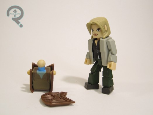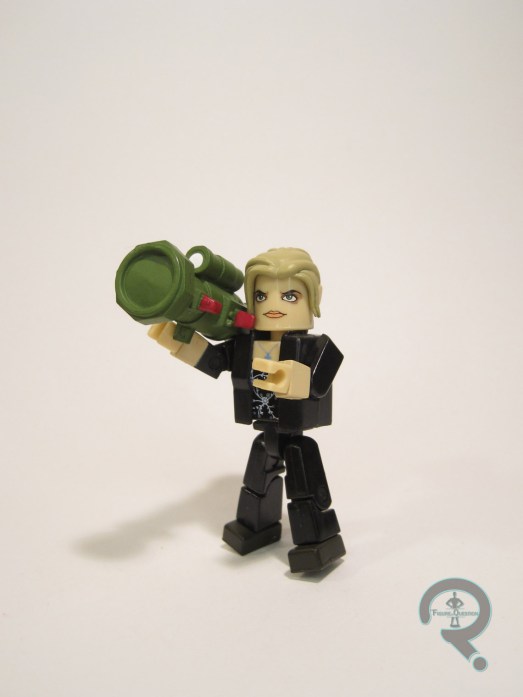Buffy was released in Series 2 of the Buffy PALZ line. Each series of the line was based on a season of the show, so this is a Season 2 Buffy. She’s specifically based on the episodes “Surprise” and “Innocence,” two rather pivotal episodes that deal with the fallout of Angel’s loss of soul. The figure stands 3 inches tall and she has 14 points of articulation. As with the three prior PALZ figures I’ve looked at, this Buffy is built on the basic female body (Four figures in and I still haven’t actually reviewed the male body; that’s kind of amusing), or should I say “bodies,” since Buffy’s got two them. The one she comes wearing is based on her “Innocence” appearance, and it’s pretty straight forward as far as Buffy looks go. She’s got an extra light jacket piece, which I don’t recall getting any other use, as well as a hair piece with her hair more pulled back, which I believe was another unique piece. Both pieces replicate Buffy’s look from he episode pretty well. PALZ were known for their plethora of swappable pieces, but Buffy doesn’t so much swap pieces as she does come with a second figure. Her second look is based on “Surprise” and requires only the swapping over of her head, hands, and feet to complete it. She gets another hair piece as well as a slightly heavier jacket piece, both re-used from the previously reviewed Vampire Buffy. Again, they match the show appearance pretty closely, though this look’s a bit less distinctively Buffy than the other one. The paintwork on both bodies is pretty solid, though not terribly involved. The “Innocence” look ends up with the most interesting work, with the pattern of her shirt and her necklace being handled nicely. There are two different faces to choose from on the head. They aren’t as divergent as some of the faces were, but offer up a happier/angrier selection, which complements the chosen attire well. In addition to the whole extra body, Buffy is also packed with the rocket launcher she uses to dispatch the Judge, as well as the torso of his aforementioned Judge-iness, which is perhaps one of the most clever Build-A-Figure ideas ever.