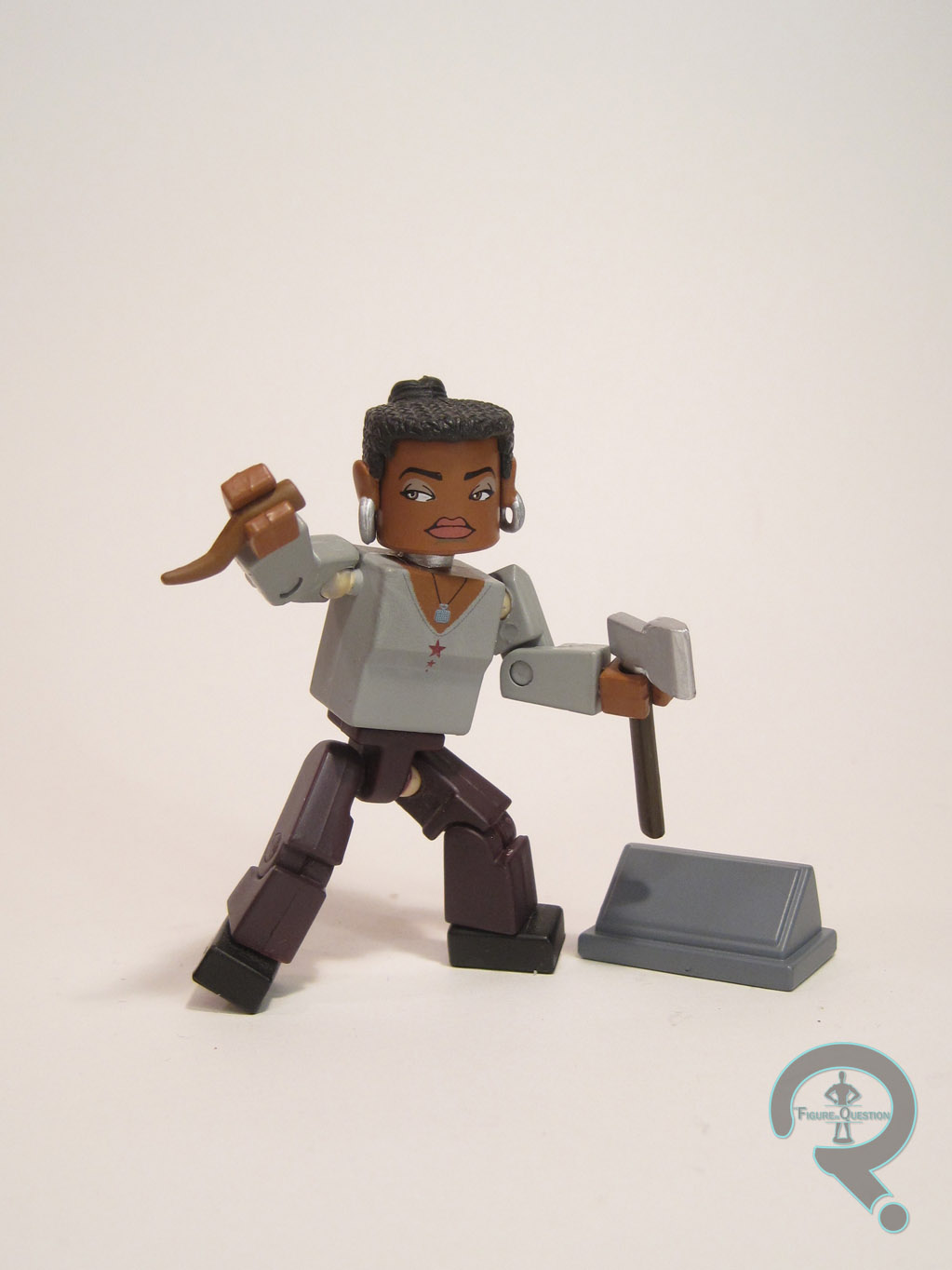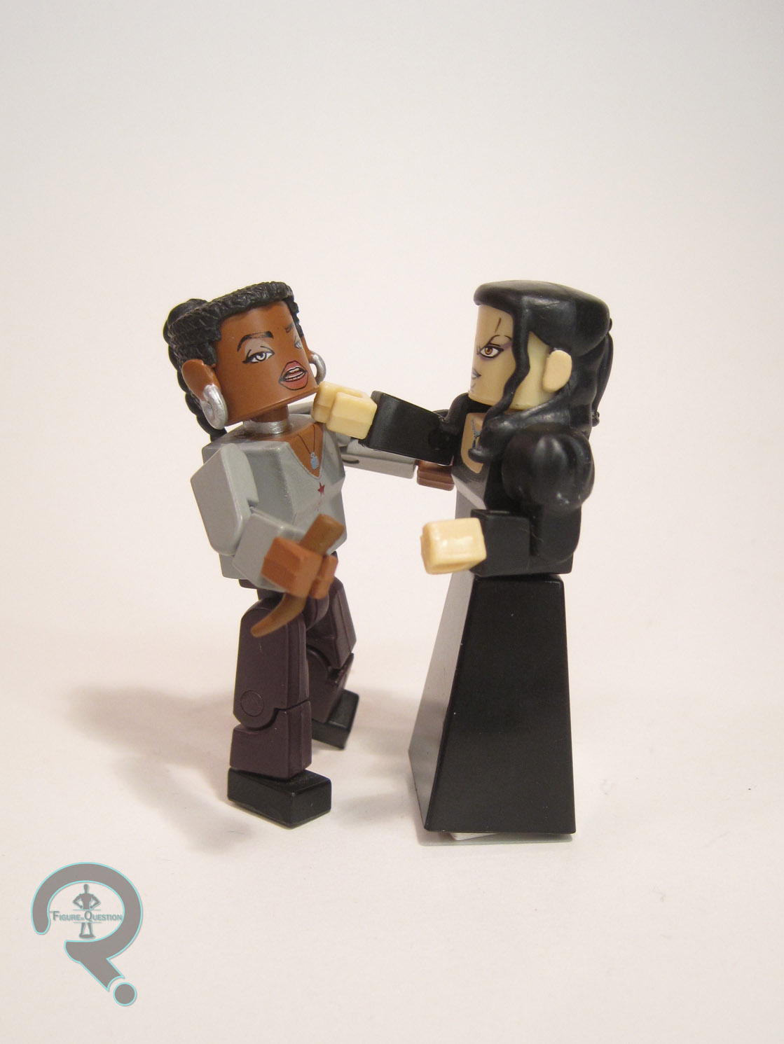 Buffy was released in Series 2 of the Buffy PALZ line. Each series of the line was based on a season of the show, so this is a Season 2 Buffy. She’s specifically based on the episodes “Surprise” and “Innocence,” two rather pivotal episodes that deal with the fallout of Angel’s loss of soul. The figure stands 3 inches tall and she has 14 points of articulation. As with the three prior PALZ figures I’ve looked at, this Buffy is built on the basic female body (Four figures in and I still haven’t actually reviewed the male body; that’s kind of amusing), or should I say “bodies,” since Buffy’s got two them. The one she comes wearing is based on her “Innocence” appearance, and it’s pretty straight forward as far as Buffy looks go. She’s got an extra light jacket piece, which I don’t recall getting any other use, as well as a hair piece with her hair more pulled back, which I believe was another unique piece. Both pieces replicate Buffy’s look from he episode pretty well. PALZ were known for their plethora of swappable pieces, but Buffy doesn’t so much swap pieces as she does come with a second figure. Her second look is based on “Surprise” and requires only the swapping over of her head, hands, and feet to complete it. She gets another hair piece as well as a slightly heavier jacket piece, both re-used from the previously reviewed Vampire Buffy. Again, they match the show appearance pretty closely, though this look’s a bit less distinctively Buffy than the other one. The paintwork on both bodies is pretty solid, though not terribly involved. The “Innocence” look ends up with the most interesting work, with the pattern of her shirt and her necklace being handled nicely. There are two different faces to choose from on the head. They aren’t as divergent as some of the faces were, but offer up a happier/angrier selection, which complements the chosen attire well. In addition to the whole extra body, Buffy is also packed with the rocket launcher she uses to dispatch the Judge, as well as the torso of his aforementioned Judge-iness, which is perhaps one of the most clever Build-A-Figure ideas ever.