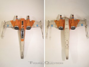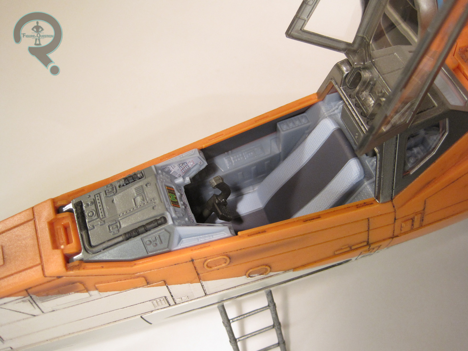 pretty straightforward, so I had no issues getting it all properly put together. Once fully assembled, it’s definitely a big boi, at 18 1/2 inches in length and with a wingspan of 18 inches, making it noticeably larger than the previous Poe X-Wing, if still under-scaled for proper movie scaling. It’s also a far more detailed item, with the shared details being a lot sharper on this particular offering. Additionally, there are far less obvious points of assembly, and some of the less oft-seen parts of the ship are actually properly detailed this time around. There’s a fully detailed cockpit this time around, which is far better scaled to the Poe figure that is intended to go in it, with a defined seat, console, and controls. In order to make it more of a display piece and less of a toy piece (and no doubt in order to offer just a touch more customizability), the spot for BB-8 is not filled by a