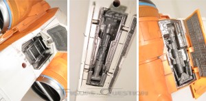 permanently attached BB, but instead has a spot that can hold either a BB or a classic Astromech unit. With the BB removed, the launching mechanism for the wings also had to be moved; now it’s done via two buttons built into the rear of the ship, which are quite nicely hidden. The vehicle also gets proper landing hear and such this time, rather than just the one foot at the front of the ship. All three pieces of gear are designed to fold up compactly and out of the way, and are fully detailed when deployed. They do take a little of work to get properly locked into place when deployed, but work better than I’d initially expected. Also included with the landing gear is a little ladder, used for the pilot to get into place, which even has a dedicated spot on the underside of the ship, which is pretty darn nifty. The biggest change to the Fighter in-universe is of course the colorscheme, which is generally a much brighter appearance. I really dig this look, and I look forward to seeing it in action in the film. The paint does a respectable job of capturing the colors, as well as still giving the ship a real worn-in appearance, which the prior ST vehicles have more frequently shied away from.