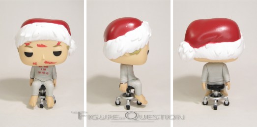Tony Vreski is #671 in Funko’s Pop! Movies line, the fourth of the four Die Hard Pops. There’s something downright amusing about the fact that we got four Pops from the movie, and they were the three most major characters in the film…and Tony. This is also the only version of Tony we get, all corpsified and gross. Alas, there is not “generic blonde guy in grey sweats and grandma glasses” Tony out there. The figure is 3 3/4 inches tall and has the same single neck joint that all of the non-Marvel and Star Wars Pops get. For him, it’s not quite as useful, what with the being dead and all. He’s actually pretty stable for a modern Pop, thanks to being seated on his little rolling chair (which, sadly, doesn’t actually roll. I know, how sad), which I was certainly happy about, because I get a little tired of these things falling over all the time. It’s one of the more unique Pop sculpts, not by virtue of the outfit or anything, of course, but that pose is definitely not a common one, and does its best to sell the “this guy’s definitely dead” thing that’s sort of essential to a good Dead Tony figure. Although, I suppose it’s possible he’s just *really* out of it (no joke, when Super Awesome Wife first saw him, she asked if he was alright…I then had to tell her he *really* wasn’t, you know, cuz he was dead). Tony’s paintwork isn’t anything amazingly complex or anything, mostly being the grey sweats and all, but he does get the appropriate movie accurate blood smears on the face, as well as the half-way closed eyes. He also gets John’s “Now I Have a Machine Gun Ho-Ho-Ho” message, although it appears “Machine” was dropped from it for space. I guess the message is still more or less the same, and it’s not like the impact of the visual is lost too much, but it’s a little odd that they dropped that one word.