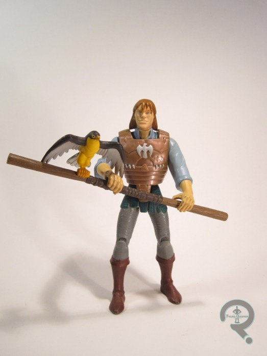 Ruber was released in the six-figure assortment that made up the basic figure portion of Hasbro’s Quest For Camelot tie-in line. Ruber is based on his fully armored appearance from after the film’s time skip, which is his primary look, so that makes a lot of sense. The figure stands about 6 1/2 inches tall and he has 6 points of articulation. He lacks the neck joint that Garrett and Arthur both had, and also gets no extra joints at the waist or wrist like they did, making him a rather stiff figure. It’s more a design thing, though, so it’s not awful. The sculpt is more faithful to the source material than the other two, keeping his more cartoony proportions and exaggerated features. That said, he still gets a lot more added texturing, keeping him consistent with the rest of the line’s stylings. I continue to be impressed by how much detailing Hasbro put into the sculpts, given how streamlined the movie’s animation models were. Ruber’s paint work is rather basic, as is expected. All the standard colors are there, but there’s not really much accenting. They did at least do the shadowing on his eyes, which keeps him truer to his movie look, and the rest of the application is pretty cleanly handled. Ruber got perhaps the most film accurate selection of extras for his figure, with his helmet, shield, and “Armor Crushing Battle Mace.” In a perfect world, I’d love to get his cloak, or maybe an alternate right arm with Excalibur affixed to it, but that wasn’t really how things went at the time. What we got is pretty awesome.