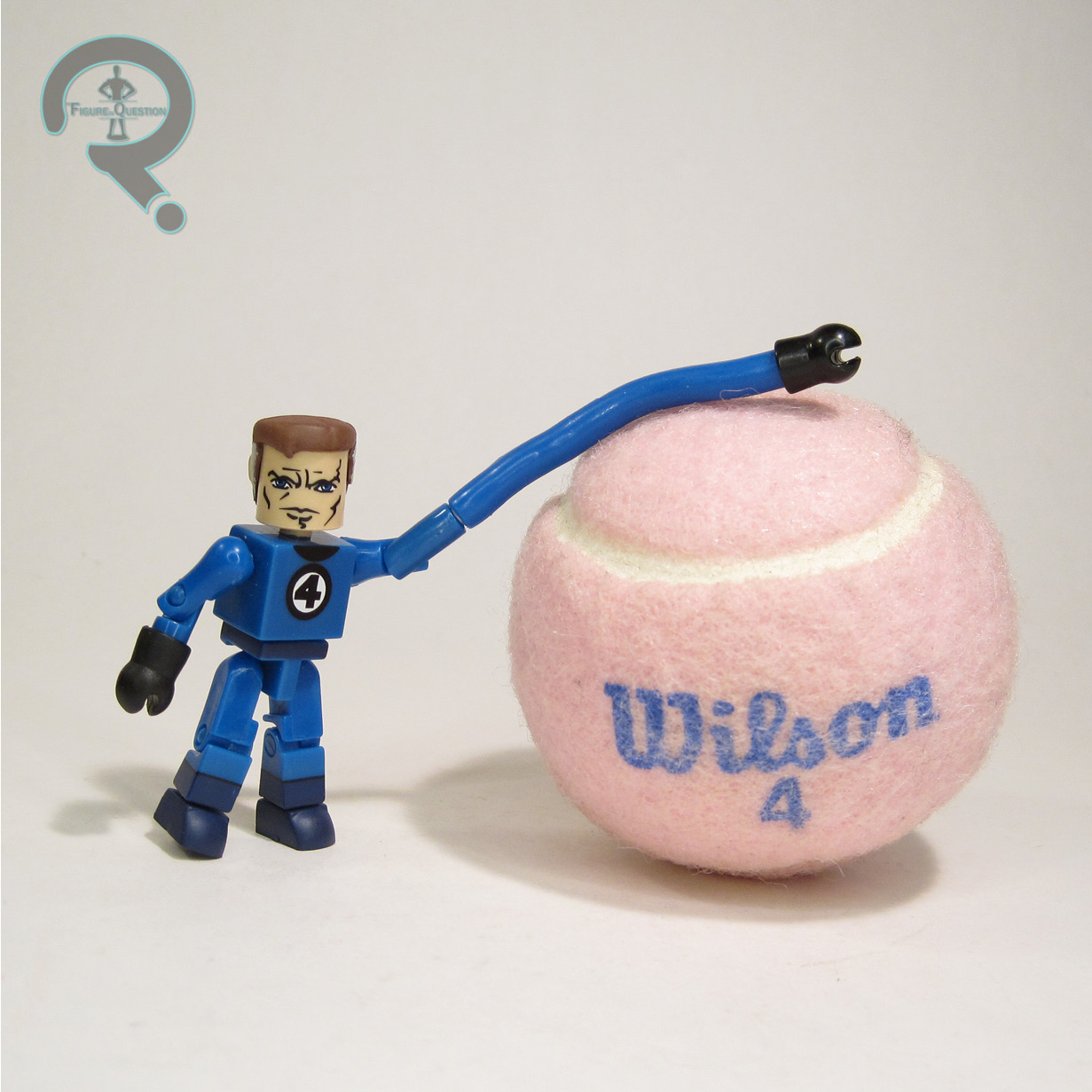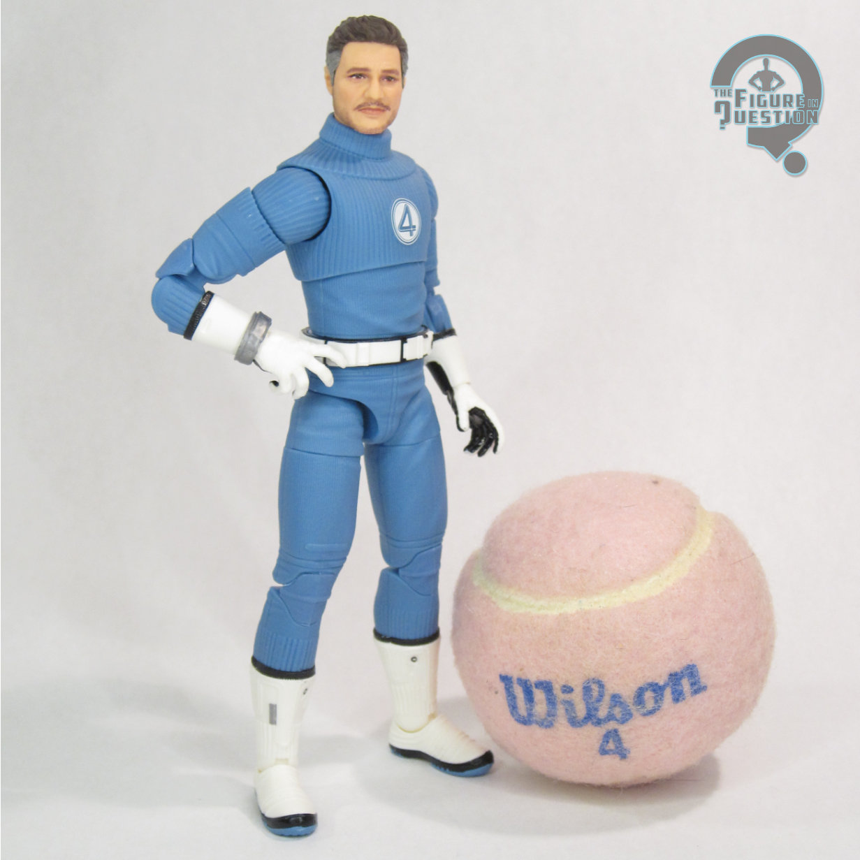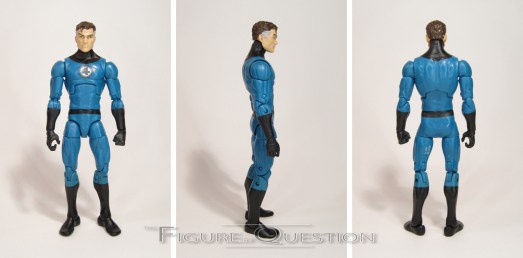 head, which is honestly one of their nicest standard person heads. It’s very dignified and scientistly, as a Reed Richards head should be. His outfit is a multi-piece assembly, with a jumpsuit that has an attached collar and belt, and plastic boots and gloves. These guys were notable in their use of plastic gloves, rather than the vinyl mittens of the earlier figures. They look better, but also mean the hands can’t be used practically. The jumpsuit has a sort of rubberized logo on the front, which looks really nice and also holds up well, and just generally has a pretty nice presence.