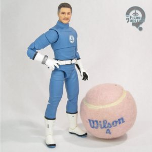 Leader of the team and best signifier of the “standard” uniform, it’s Reed Richards, Mister Fantastic. Or, Mr. Fantastic if you’re more for brevity. I’m not often for brevity, but this is apparently one of the places I am, so there’s that. The figure stands 8 inches tall and he has 26 points of articulation. As with all of the more recent figures, he’s using the revamped bandless body, which is a generally good piece, apart from some slightly reduced range on the elbows and knees. It does mean you can’t “stretch” him like the old one, but you really shouldn’t have been doing that in the first place, right? He gets a recreation of the original Mego Reed