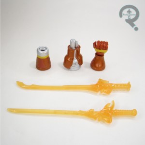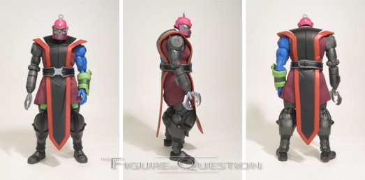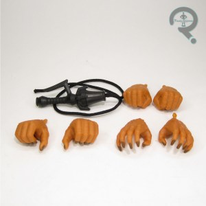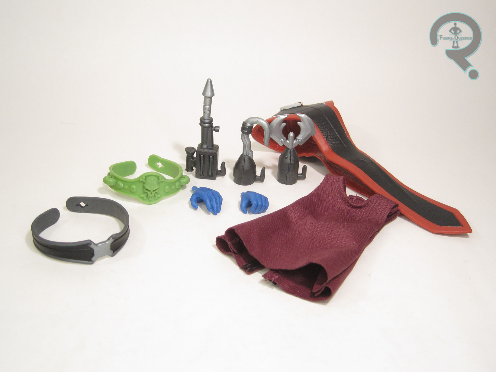 modernized edge, with his armor all getting a metallic finish. There’s also some pretty solid accent work on the face, the loincloth, and the boots, which adds some more depth and dimension. Clamp Champ is packed with two sets of hands (fists and gripping), as well as his signature Techno Clamp. The clamp is a bit changed up from prior releases; now it’s a two piece assembly, which surrounds the whole forearm, in contrast to the usual hand-held affair. The actual styling of the clamps is a little different as well. It doesn’t do the spring forward capture gimmick, instead just being a more conventional springy clamp.