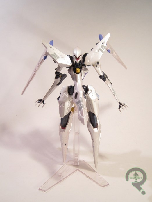 white parts, but it’s very minor, and not particularly noticeable. There’s another very impressive accessory complement with Gwen. She gets even more hands, with all of the same basic offerings as Peter, as well as an extra pointing hand for her right hand, and a left hand for holding her phone. She then gets the aforementioned cellphone, two very dynamic web-lines, and two shorter ones for plugging into her web-shooter hands. Instead of swappable eyes, Gwen features four different face plates to choose from. There’s the basic eyes, the squinty eyes, the asymmetric eyes (by far my favorite), and a fully unmasked face. The unmasked face is very stylized, and I find not particularly well-scaled to the body, but the other three plates work very well, and swap in and out without much trouble. Lastly, Gwen also includes a display stand, for those prolonged poses, though she’s quite stable on her own.