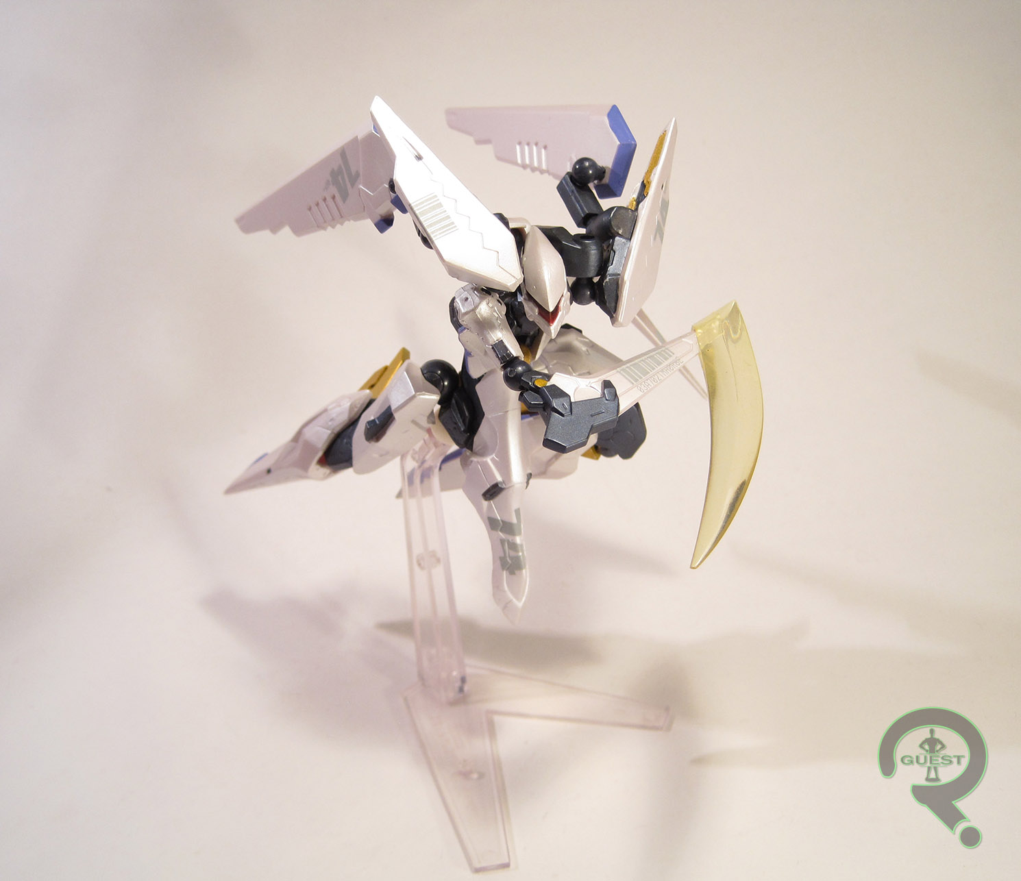 white parts, but it’s very minor, and not particularly noticeable. There’s another very impressive accessory complement with Gwen. She gets even more hands, with all of the same basic offerings as Peter, as well as an extra pointing hand for her right hand, and a left hand for holding her phone. She then gets the aforementioned cellphone, two very dynamic web-lines, and two shorter ones for plugging into her web-shooter hands. Instead of swappable eyes, Gwen features four different face plates to choose from. There’s the basic eyes, the squinty eyes, the asymmetric eyes (by far my favorite), and a fully unmasked face. The unmasked face is very stylized, and I find not particularly well-scaled to the body, but the other three plates work very well, and swap in and out without much trouble. Lastly, Gwen also includes a display stand, for those prolonged poses, though she’s quite stable on her own.